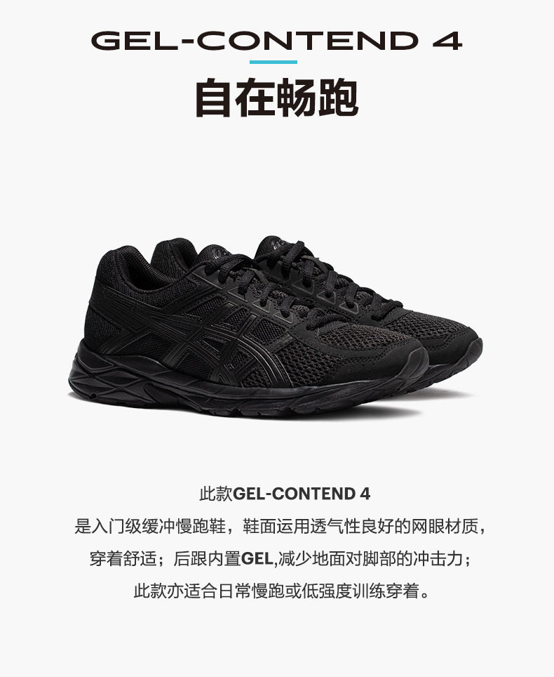 Asics Asics Asics Женская обувь гель-контента 4 черные легкие дышащие бегают спортивные туфли T8D9Q-010