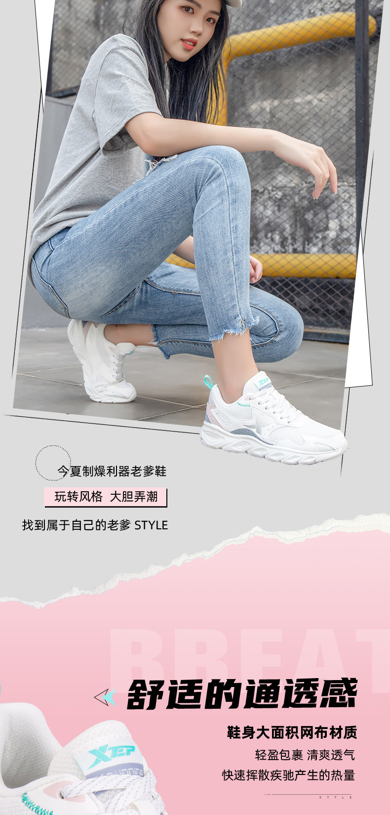 Xtep, летняя сетчатая дышащая спортивная обувь для отдыха