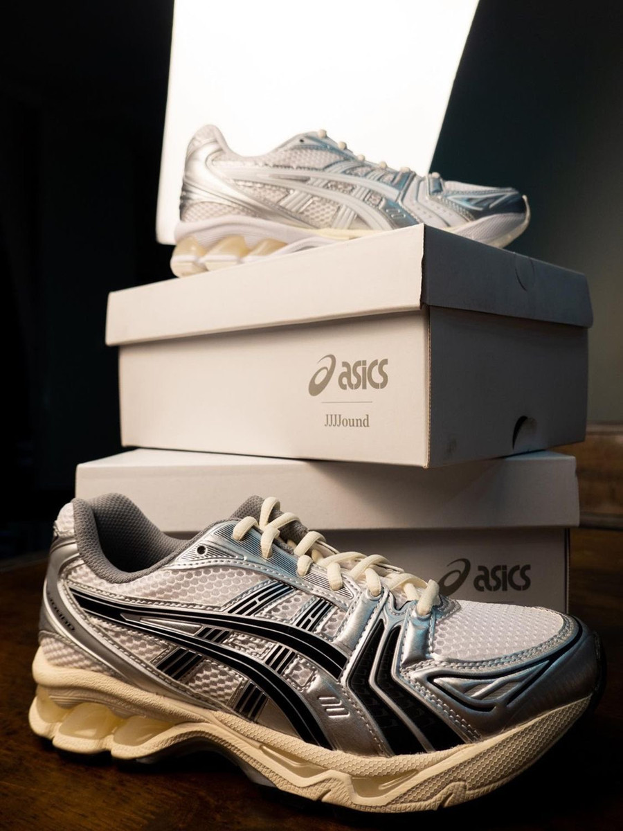 Asics x jjjjjjound Gel-Kayano 14 Черно-серебряные покрытые древние повседневные кроссовки 1201A457-101