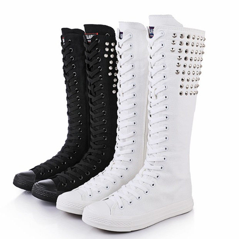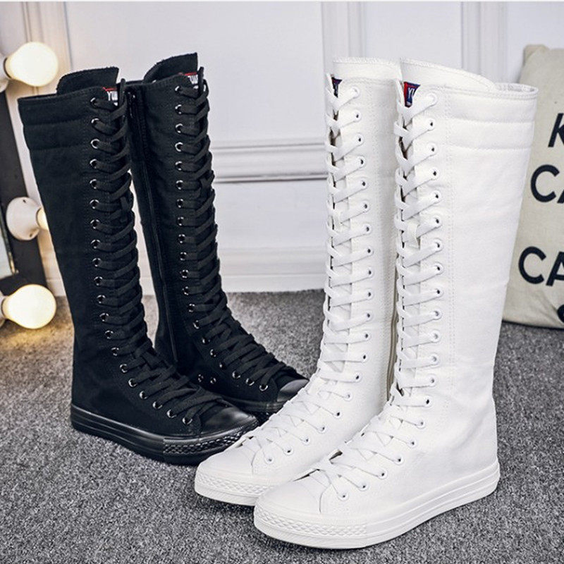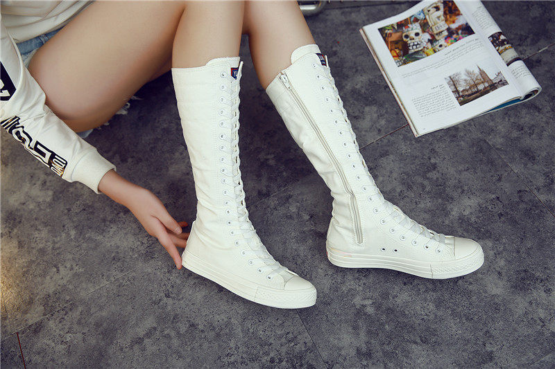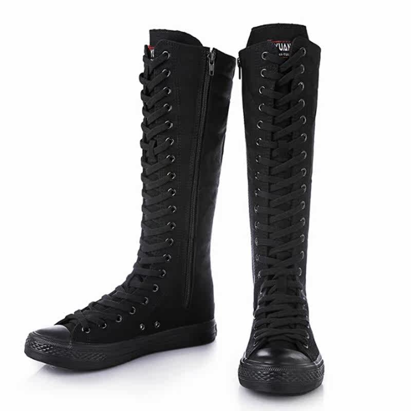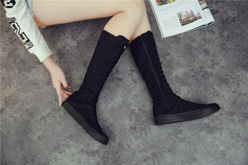 Высокие сапоги для девочек 16 лет, повседневная парусиновая обувь для учащихся средней школы, туфли на шнуровке с боковой молнией и длинными танцевальными туфлями для девочек 13 лет