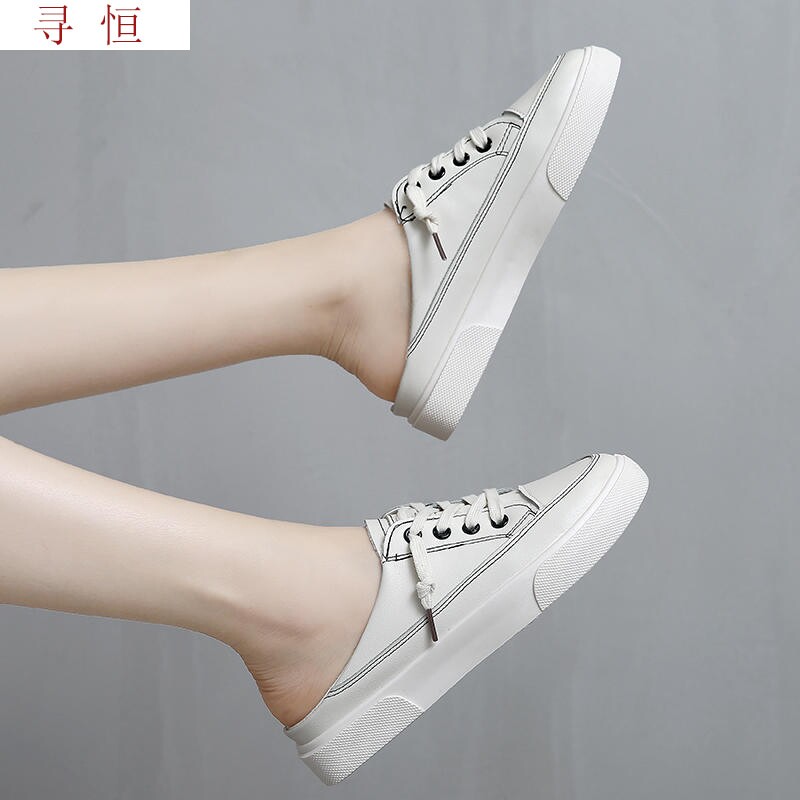 Простые повседневные кожаные тапочки-полупаковки для женщин, которые можно носить в качестве верхней одежды для маленьких девочек, интернет-знаменитостей, модные и узкие туфли с юбками на подтяжках.