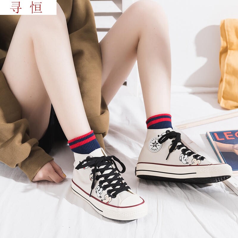 Очень легко носить высокие женские парусиновые туфли с Микки Маусом в стиле граффити, молодежный тренд, оригинальные европейские и американские уличные фотографии, расписанные вручную, дорога рабов любви
