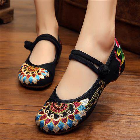 Весенне-осенние старые тканевые туфли в Пекине, туфли на плоской танкетке с вышивкой, женская обувь в этническом стиле, увеличивающая внутренний рост, туфли на мягкой подошве, танцевальная обувь