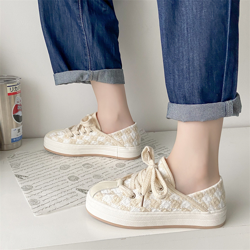 Tide, универсальная тонкая дышащая летняя тканевая белая обувь на платформе, 2023, в стиле Шанель