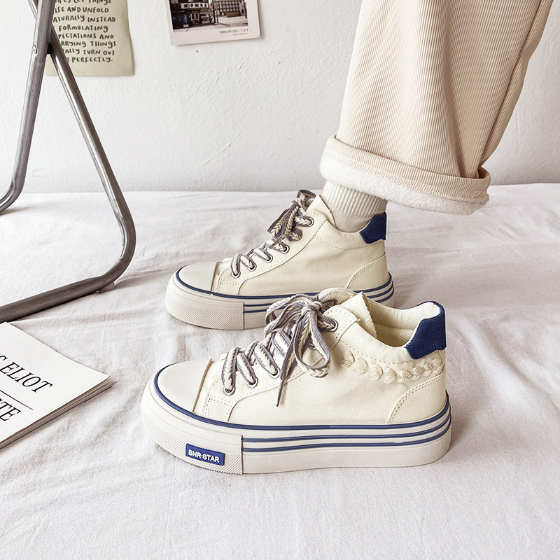 Tide, белая обувь, высокие универсальные оригинальные тканевые кроссовки на платформе, коллекция 2023, осенняя