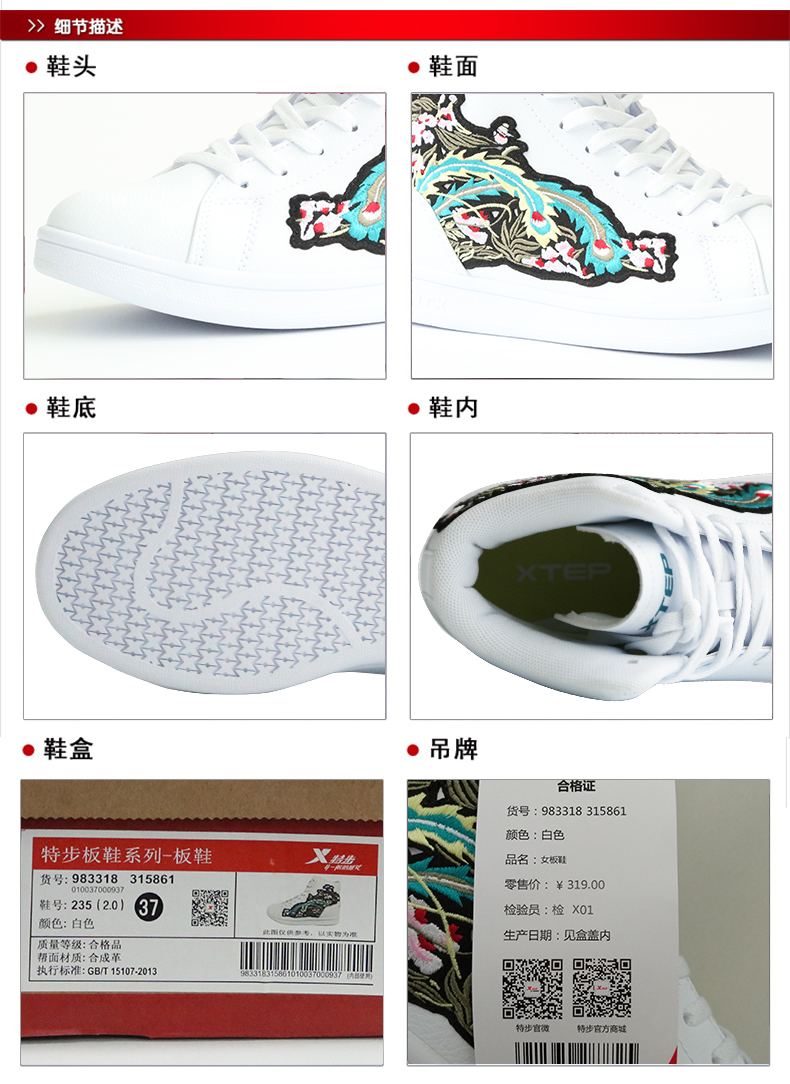 Xtep, летние кроссовки, летняя высокая повседневная обувь, спортивная обувь, туфли, с вышивкой