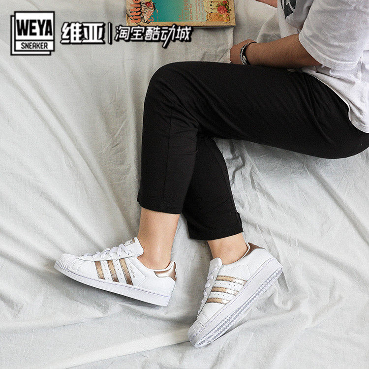 Adidas Women's Shoes Sanye Мужская обувь для мужской обуви розового золота суперзвезда маленькая белая туфли Cg5463