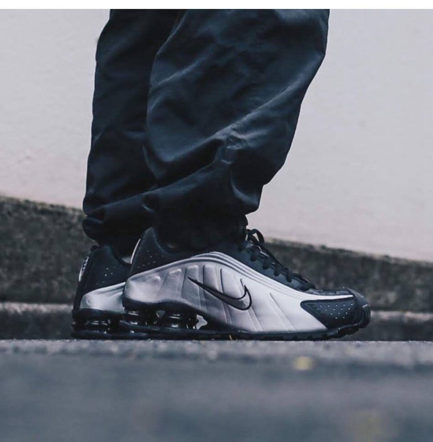 Подлинный зарубежный Nike Nike Shox R4 Technology Technology Pillar Black Silver Новая мужская кроссовка 104265-045