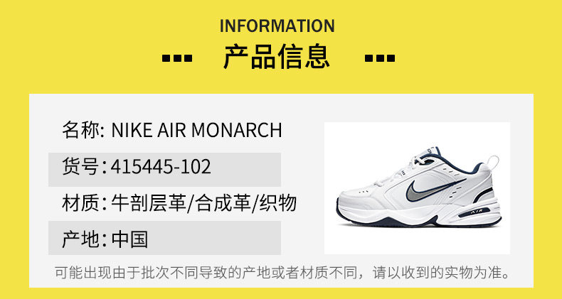 Nike Air Monarch Мужская воздушная подушка ретро-старая отец обувь повседневная спортивная обувь 415445-102