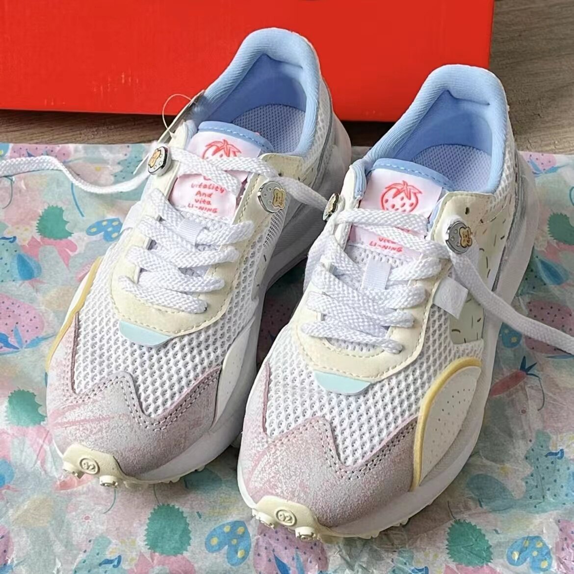 [Harma Linking/Li Ning Fang Yuanyuan Клубничная десертная станция увеличивает спортивную и случайную женскую обувь AGCS108]