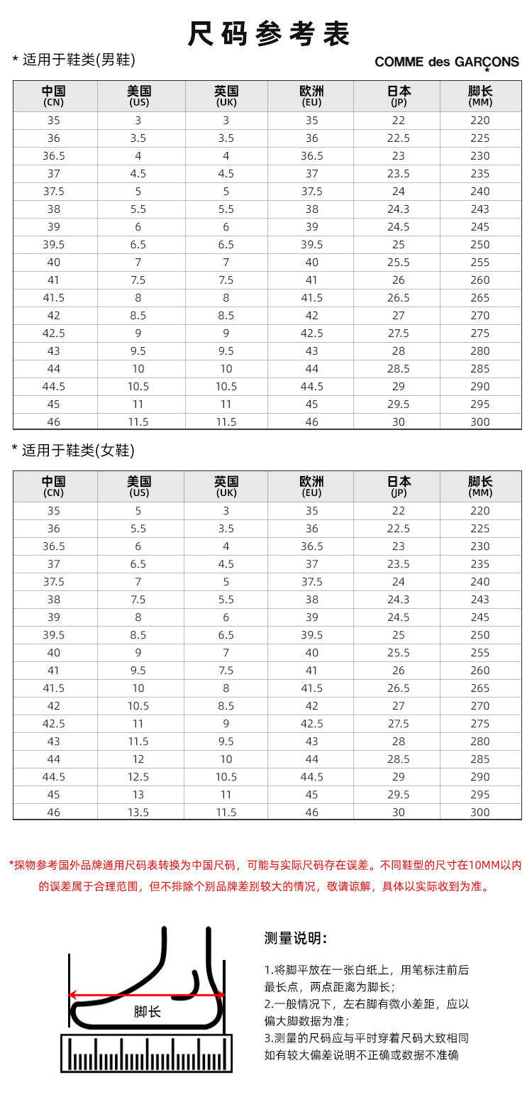 1 час возмещаемой европейской прямой почтовой рассылки новых женских повседневных туфель Comme Des garcons