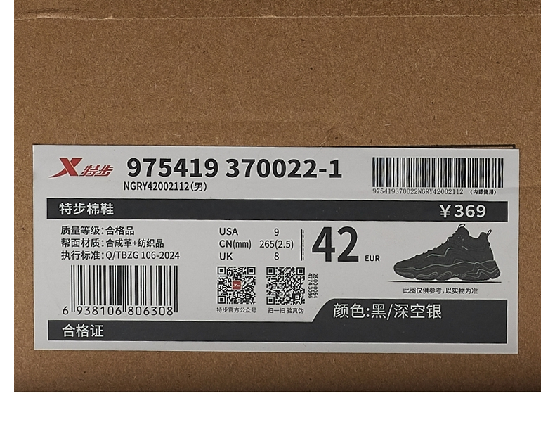 Xtep Volcano Повседневная обувь 2025 Плюс бархатные теплые большие хлопковые туфли для папы Мужская хлопковая обувь Спортивная обувь 975419370022