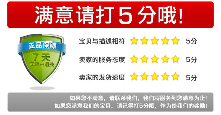 После получения товаров, покупателей и друзей, если у вас есть какое -либо неудовлетворенность или непонимание, пожалуйста, свяжитесь с нами первыми. Мы должны сделать все возможное, чтобы дать вам удовлетворительный ответ и лучшее решение. Средние обзоры (опыт показывает, что неудовлетворенность часто только для недопонимания )Хорошая репутация нелегкая, мы дорожим этим ненормально, и надеемся получить ваше понимание и поддержку!Если наши продукты и услуги удовлетворены, пожалуйста, очень похвалите после завершения транзакции, вы должны быть мотивацией для нашей работы!Спасибо! Я искренне желаю, чтобы вы покупали продукты в моем магазине - счастливое путешествие !!