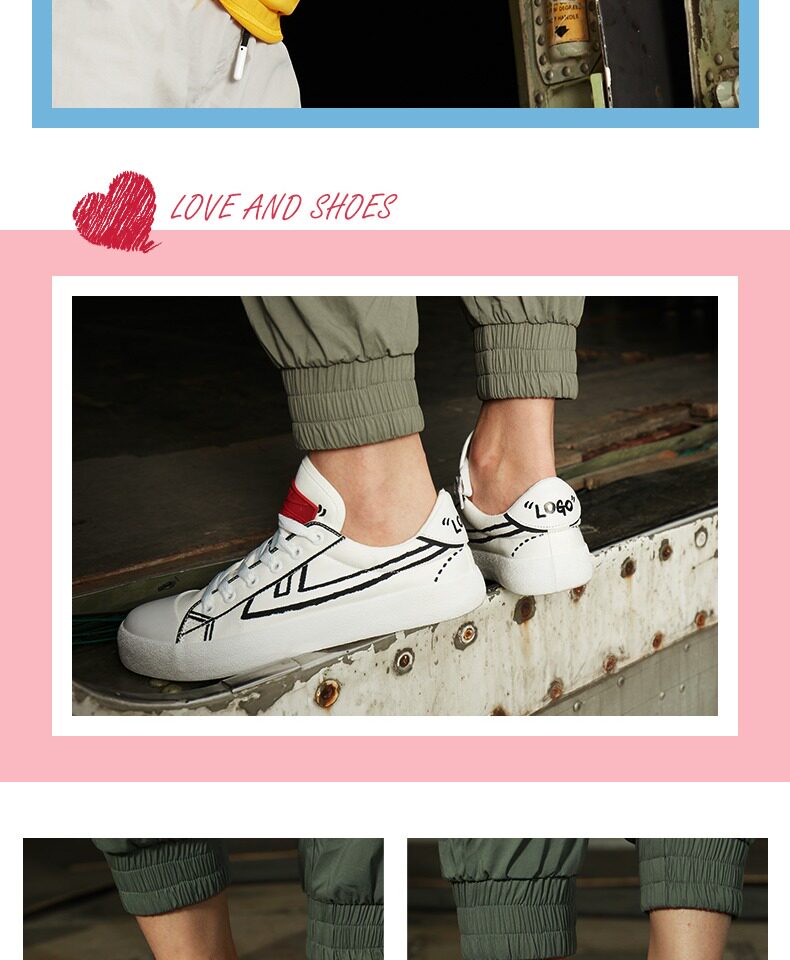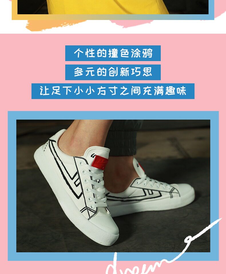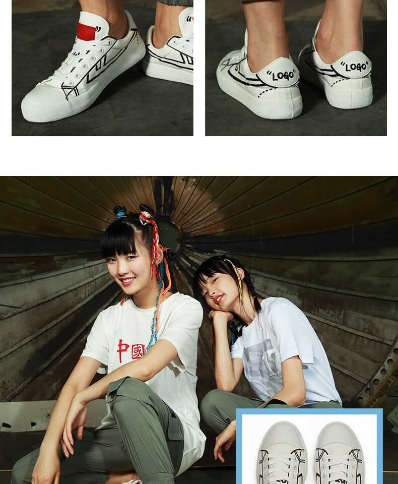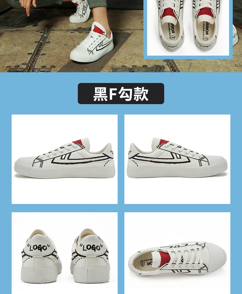 Warrior, тканевая демисезонная низкая универсальная белая обувь, ручная роспись