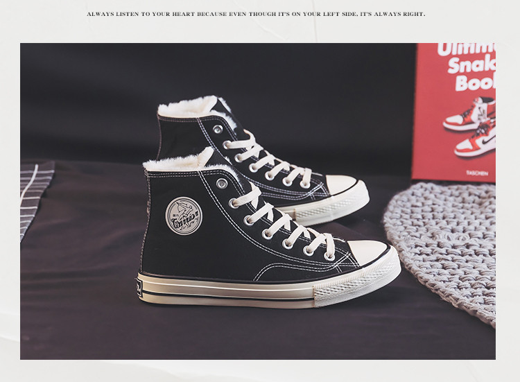 Слегка дефектные парусиновые туфли с высоким берцем и застежкой для мужчин и женщин, новинка 2025 года, зима плюс бархатные теплые хлопковые туфли для пар, черный 50