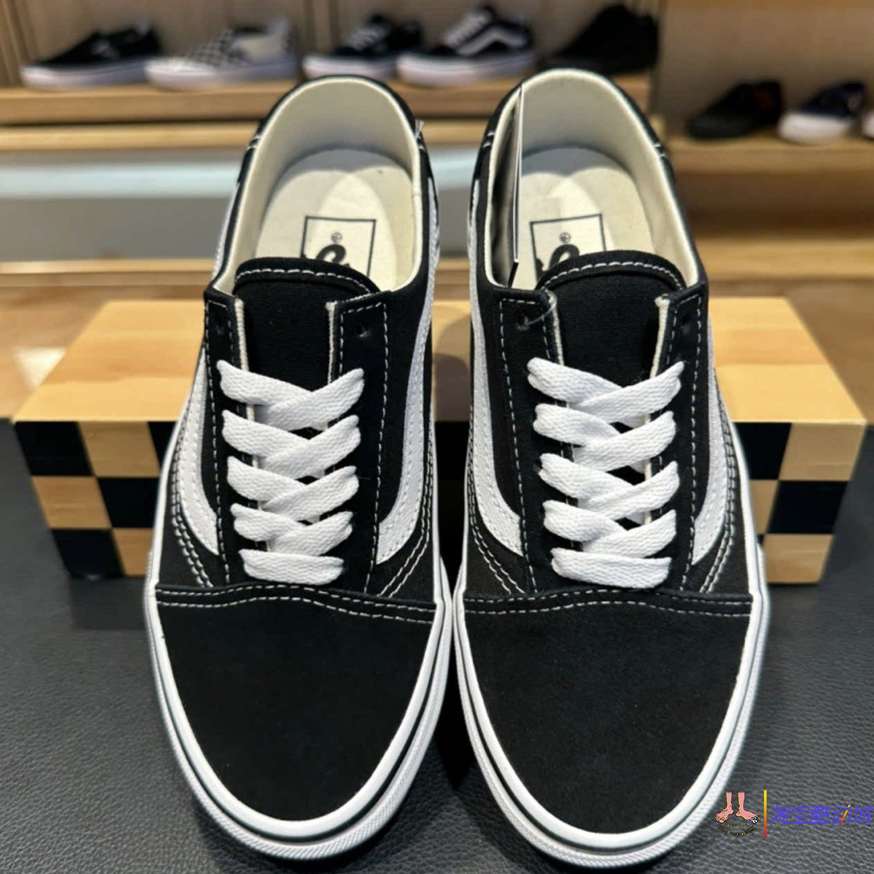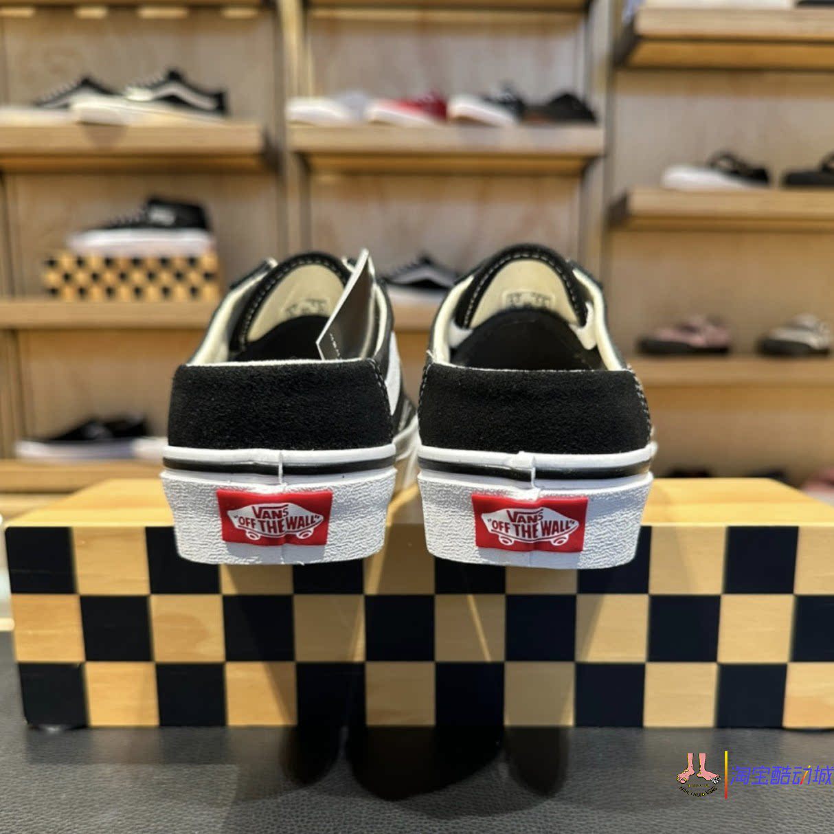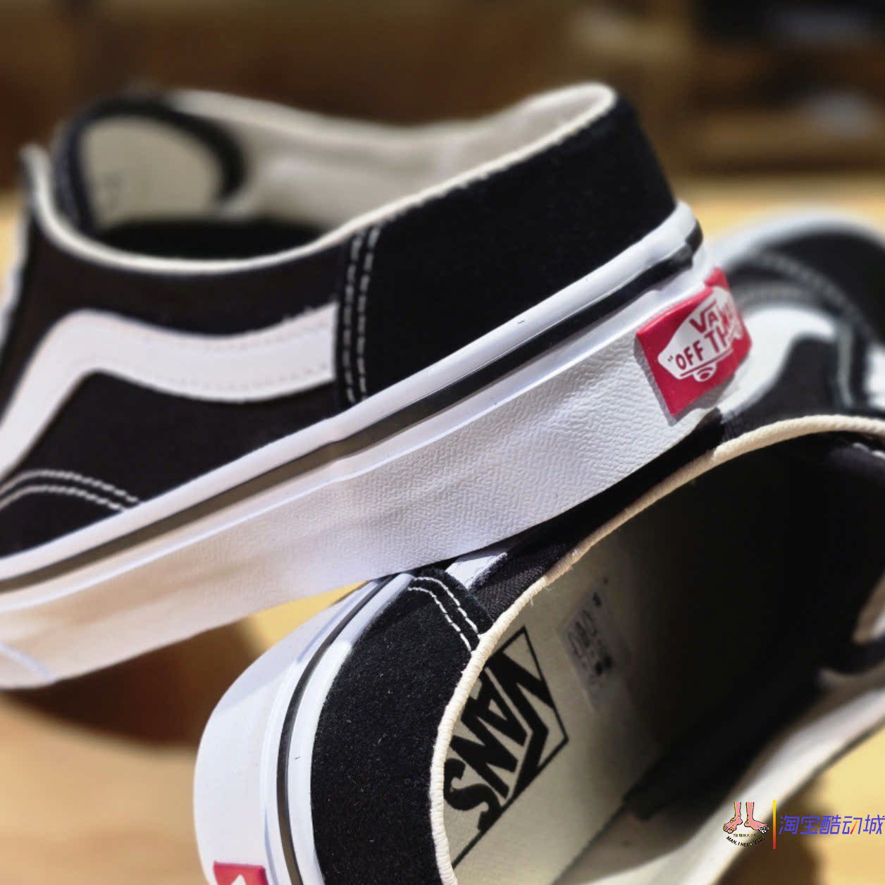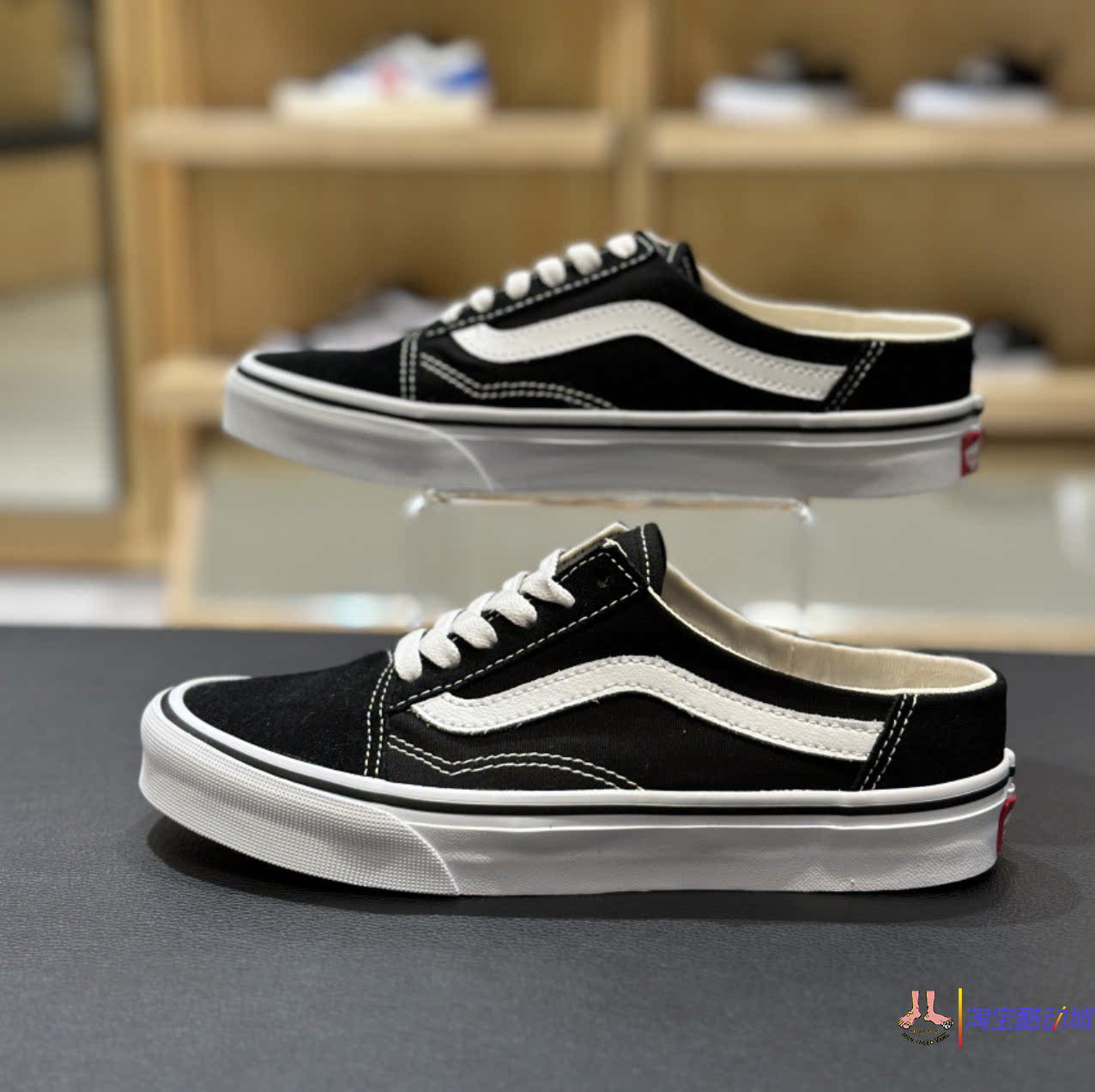 Черно-белые парусиновые тапочки Vans Old skool на одной ноге и полудраге VN0A3MUS6BT