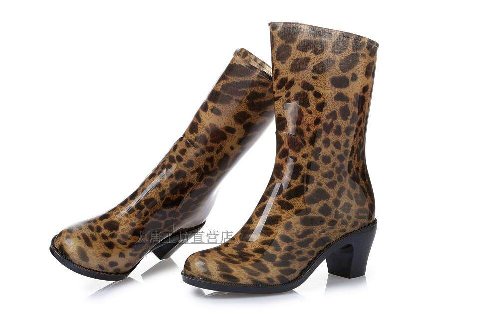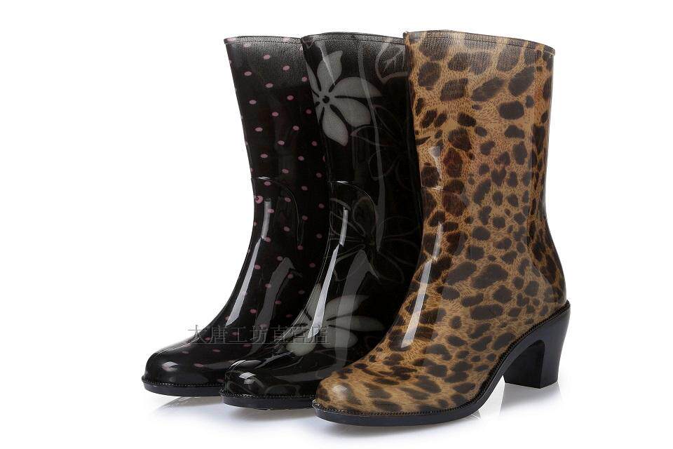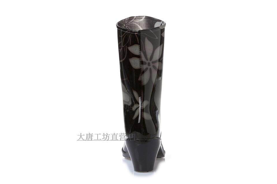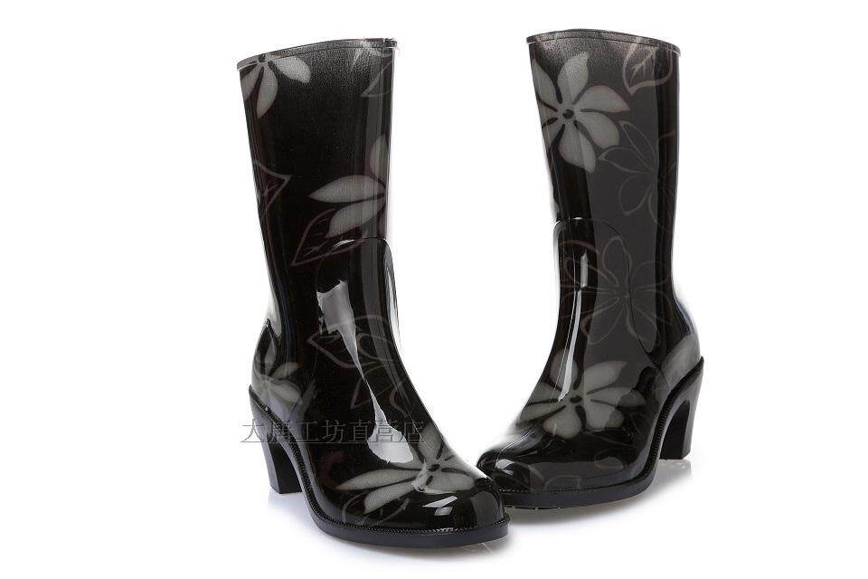 Rainwood Женская горячая модная дождевая ботинки и водяные туфли Цвет цветочный рисунок мода средняя высокая каблука 21