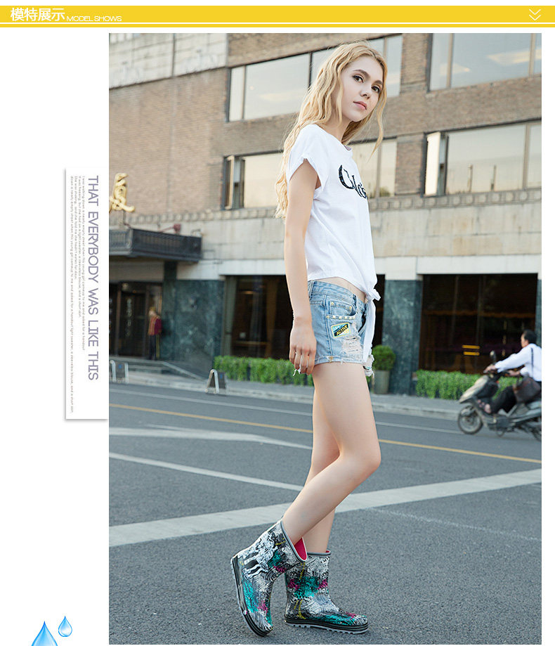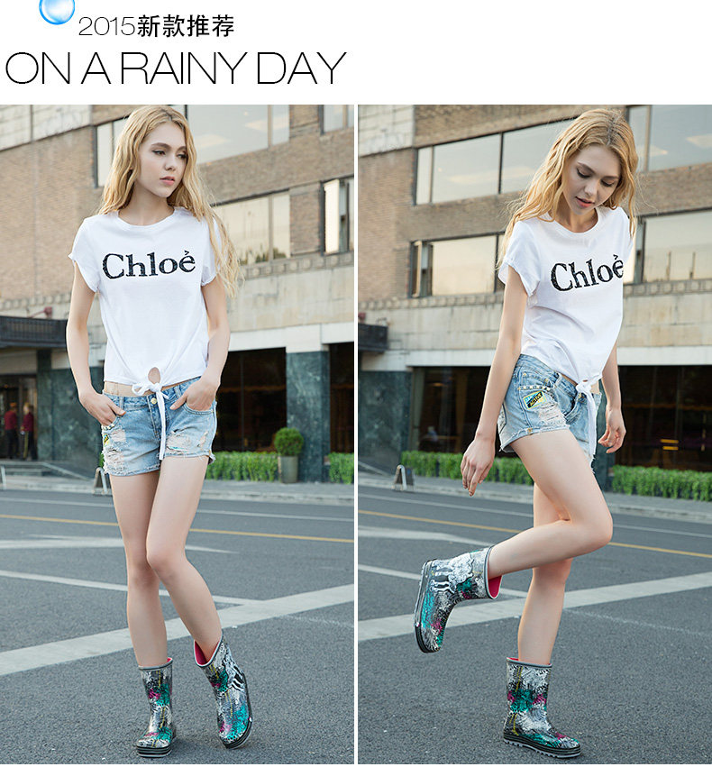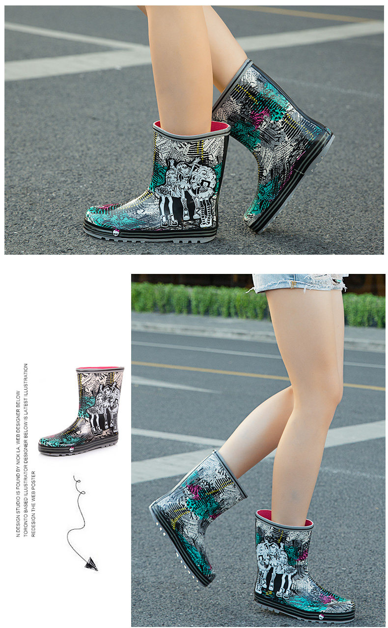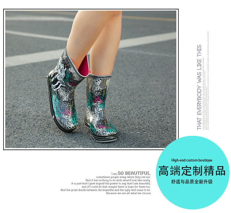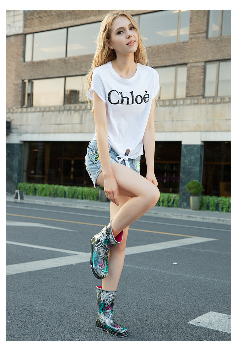 Модные дождь дождь женские ботинки с средним дождем короткие трубки дамы водонепроницаемы