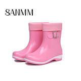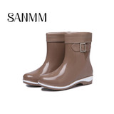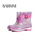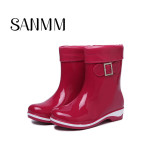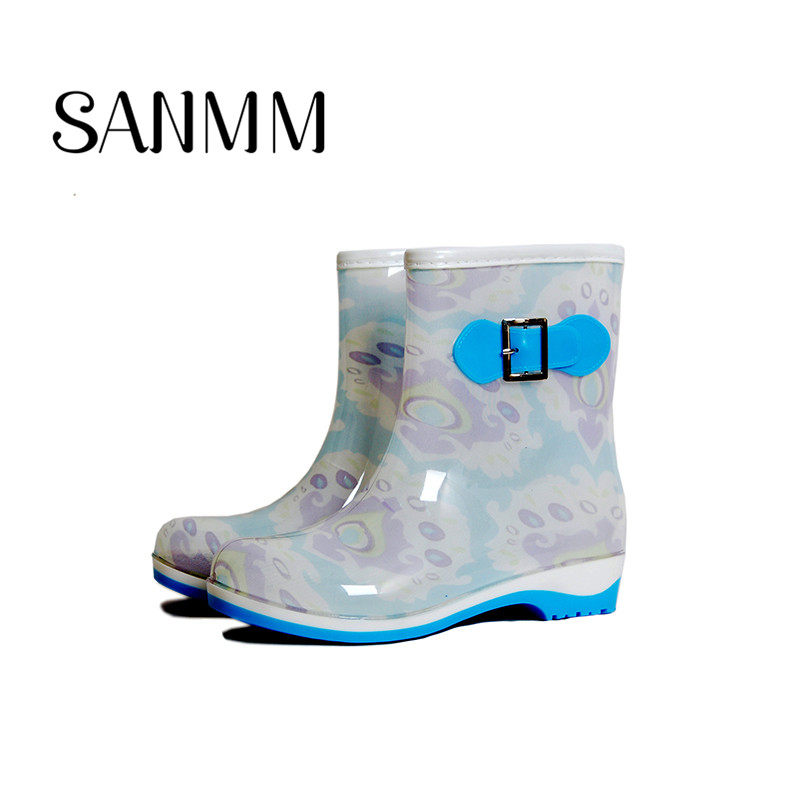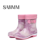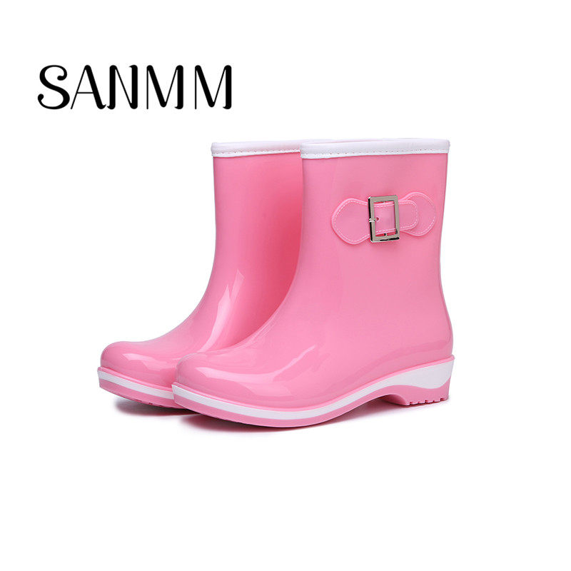 Модные туфли с бантиком, флисовые нескользящие сапоги, средней длины
