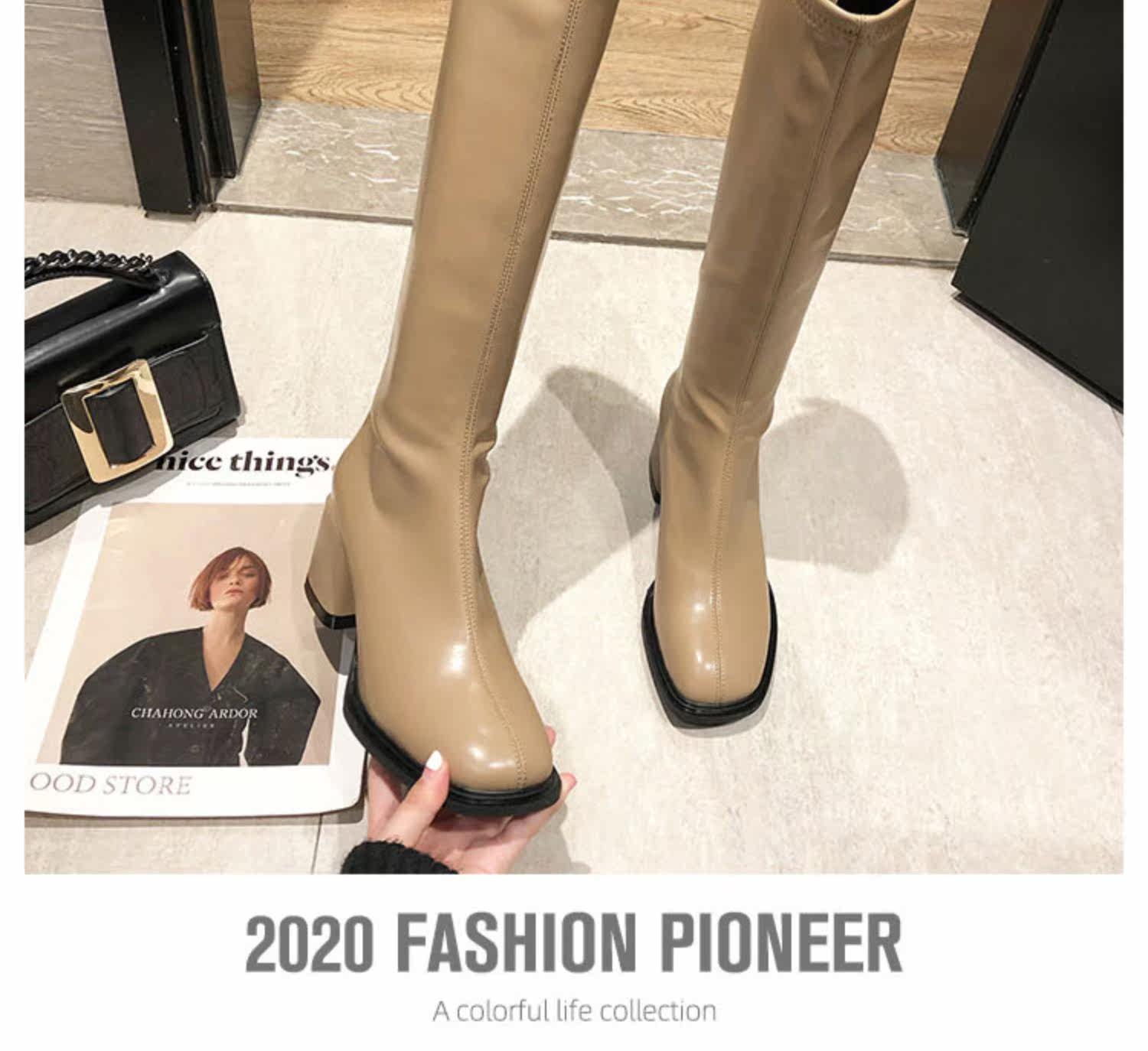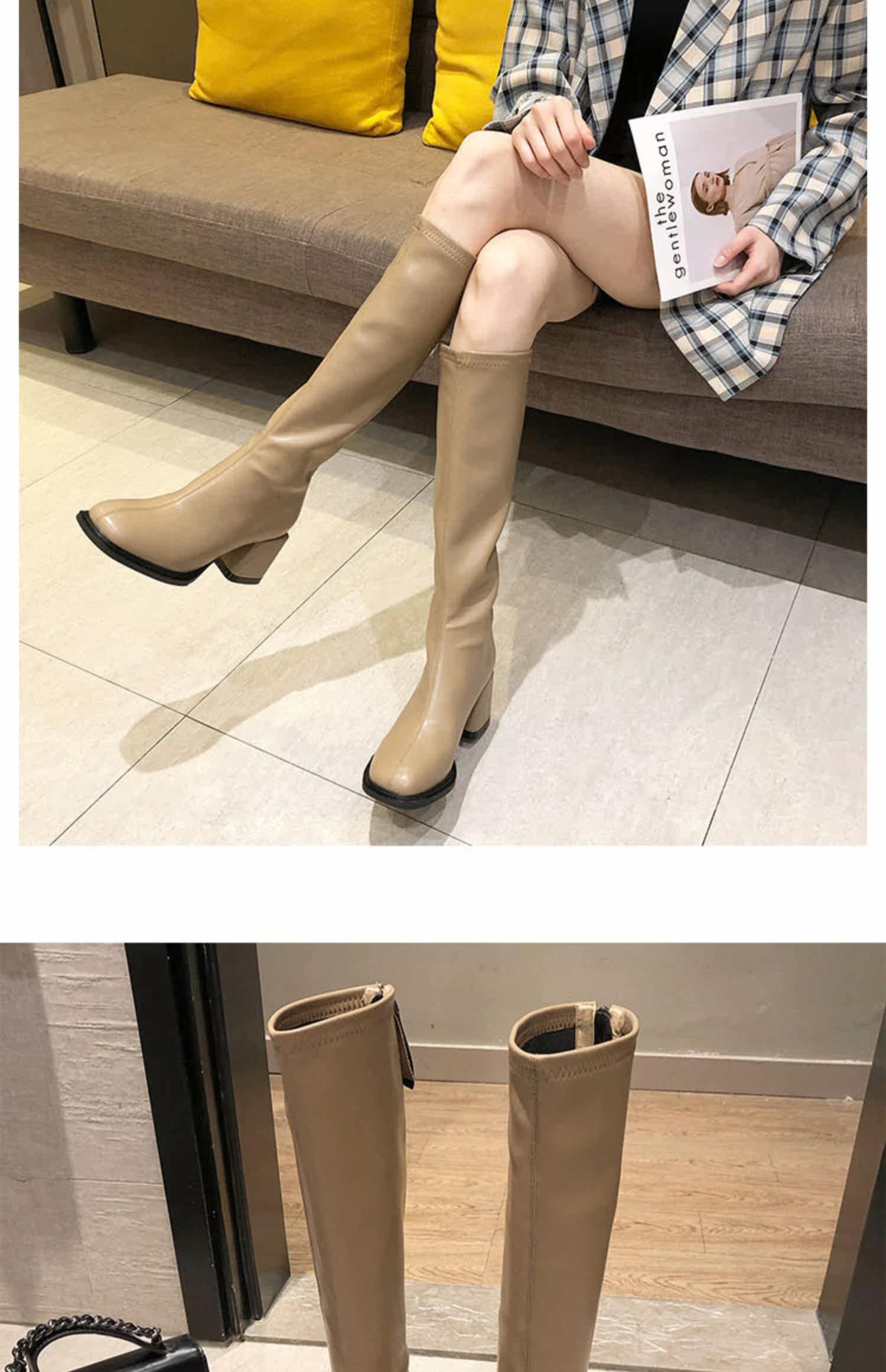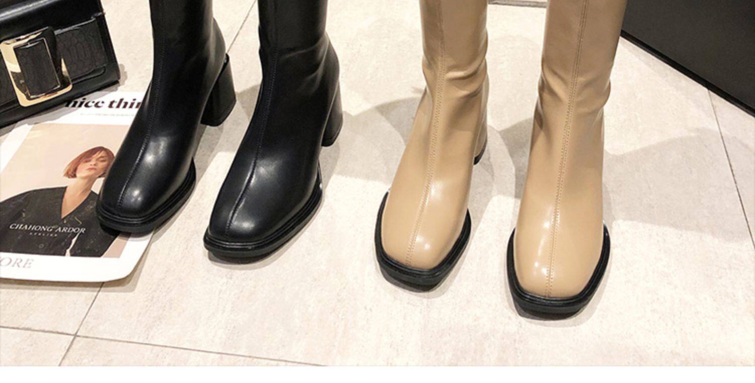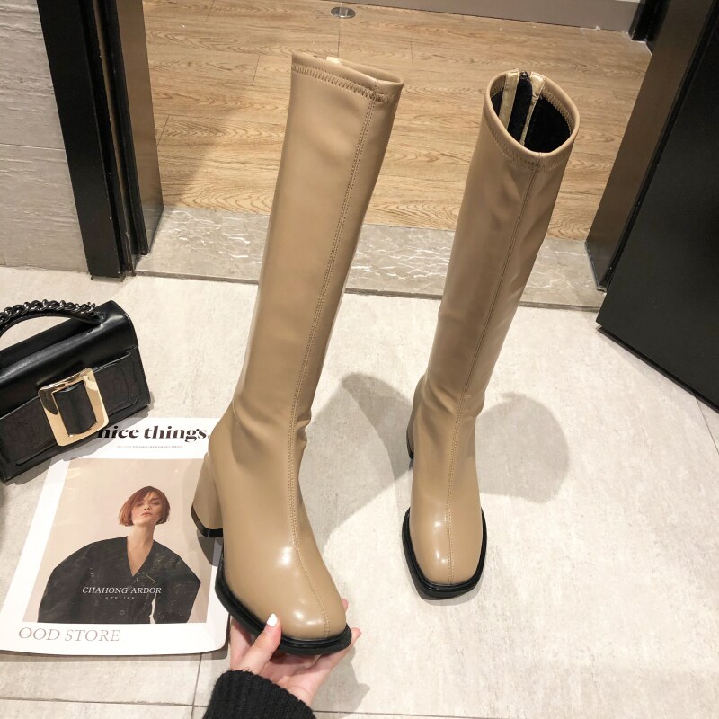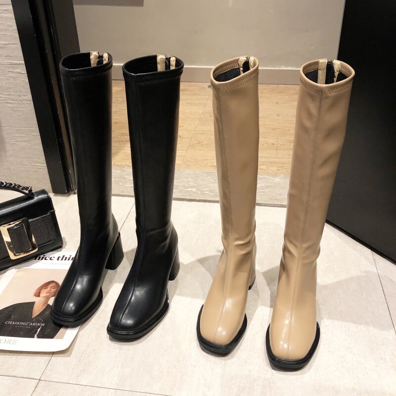 Женские высокие сапоги на толстом каблуке в королевском сестринском стиле, ботинки с квадратным носком, тонкие ботинки на высоком каблуке с застежкой-молнией сзади, удобные в носке сапоги в стиле дрэг-рыцарь.