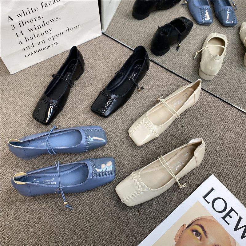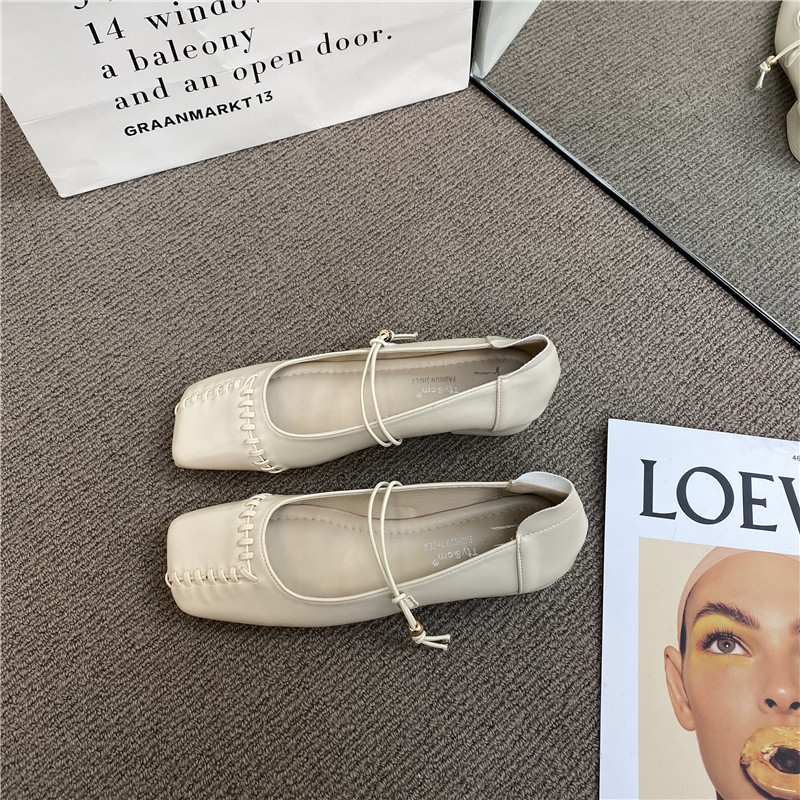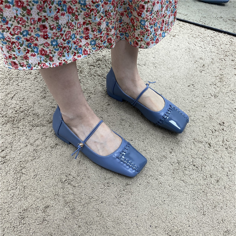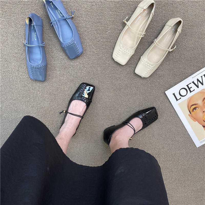 Retro Mary Zhen Single The Single Those 2024 Spring New Woven Plaving One Body Patching Grandma Shoes