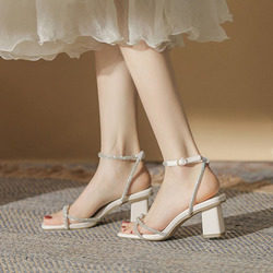Летние универсальные белые босоножки с ремешком, французский стиль