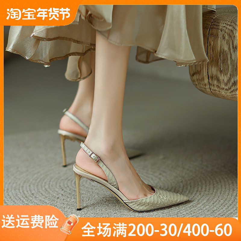 Ядовитая девушка такая красивая!Женские босоножки на высоком каблуке из змеиной кожи на шпильке высотой 8,5 см. Новая летняя сумка 2023 года с острым носком.