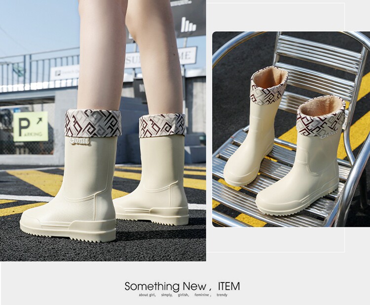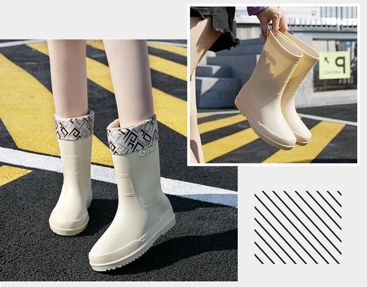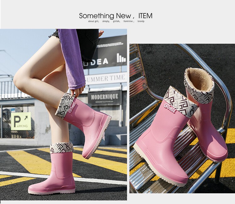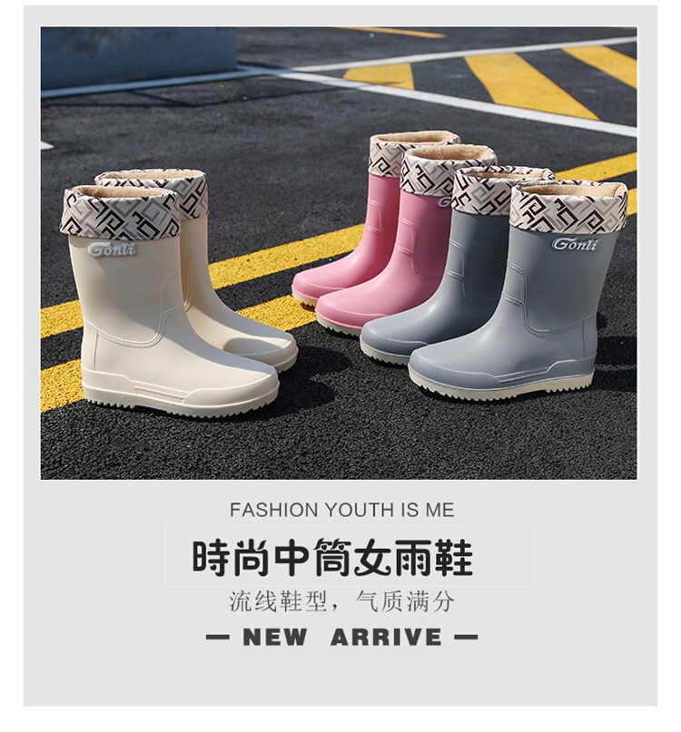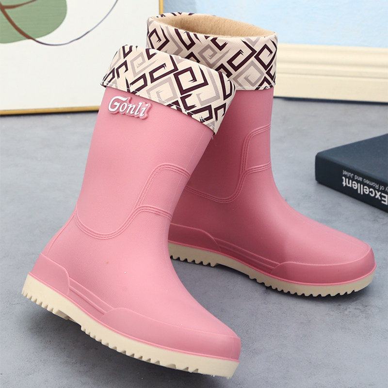 Флисовая милая нескользящая обувь, модные сапоги, водонепроницаемое ведро, средней длины, увеличенная толщина