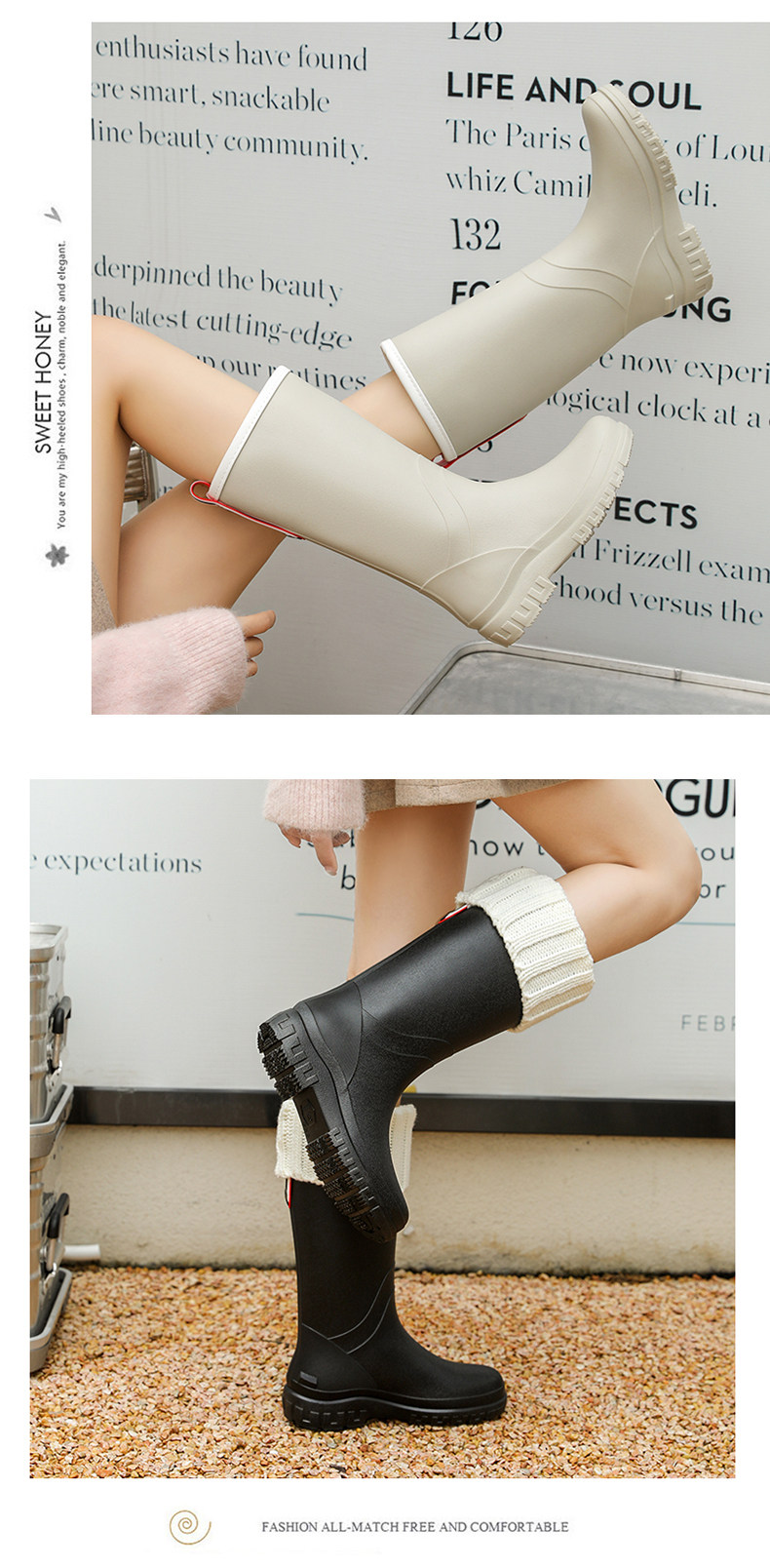 Модная обувь, высокие сапоги, нескользящая рабочая лента, в корейском стиле