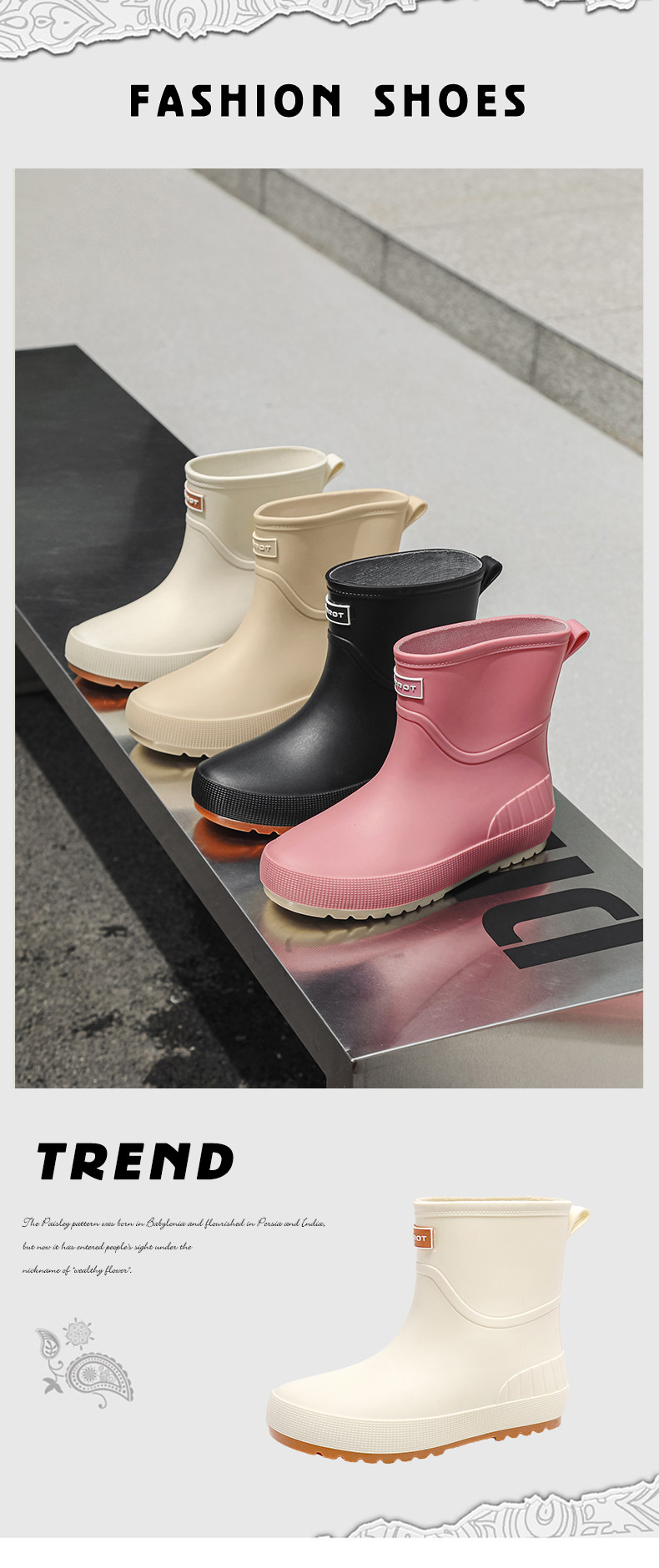 Рабочие резиновые сапоги для женщин, модная уличная обувь для воды, новые водонепроницаемые противоскользящие сапоги 2024 года, кухонные резиновые туфли со средней трубкой для женщин