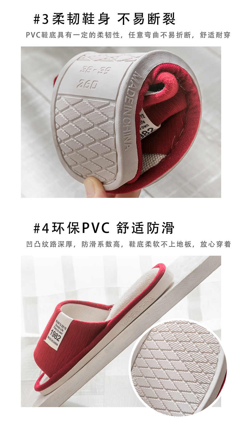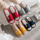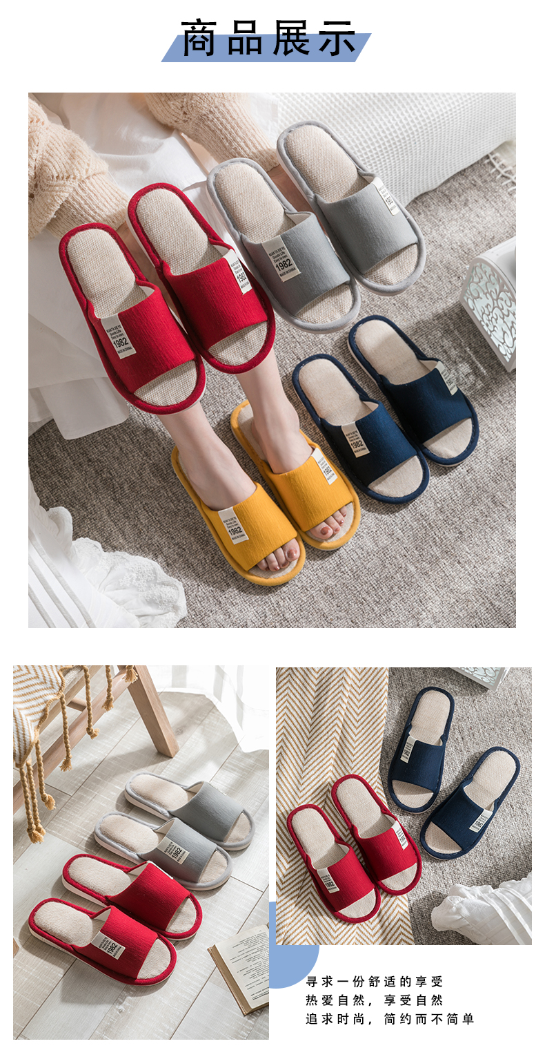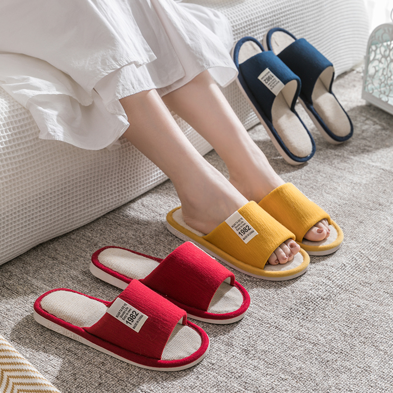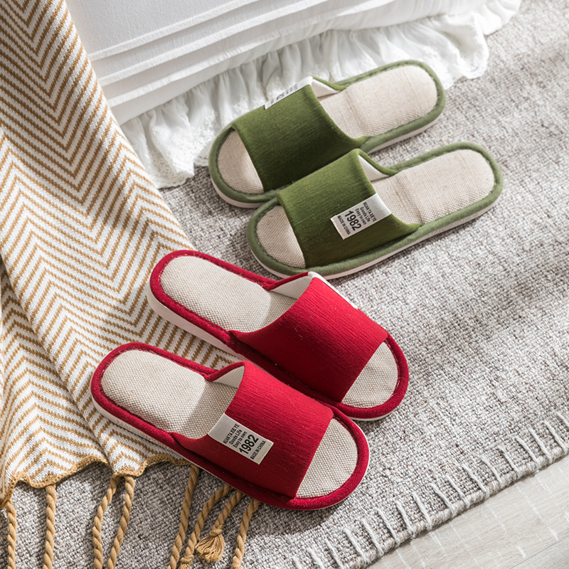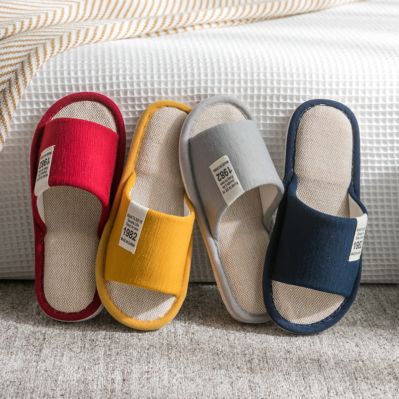 Тапочки, демисезонная нескользящая обувь для влюбленных, мягкая подошва, из хлопка и льна