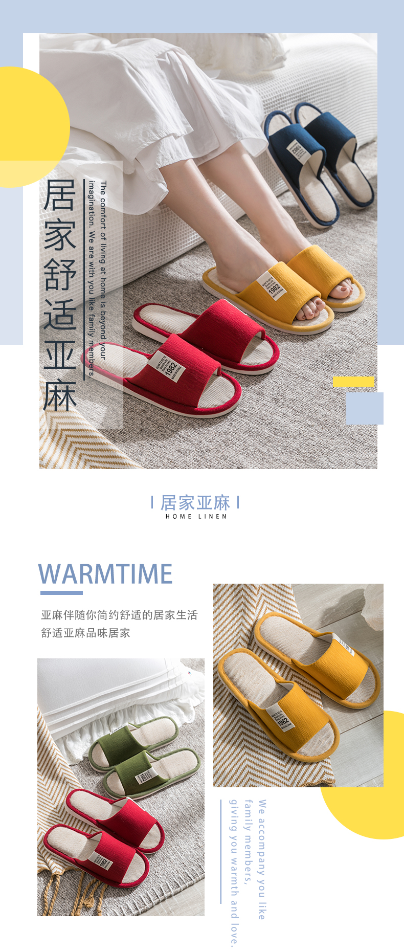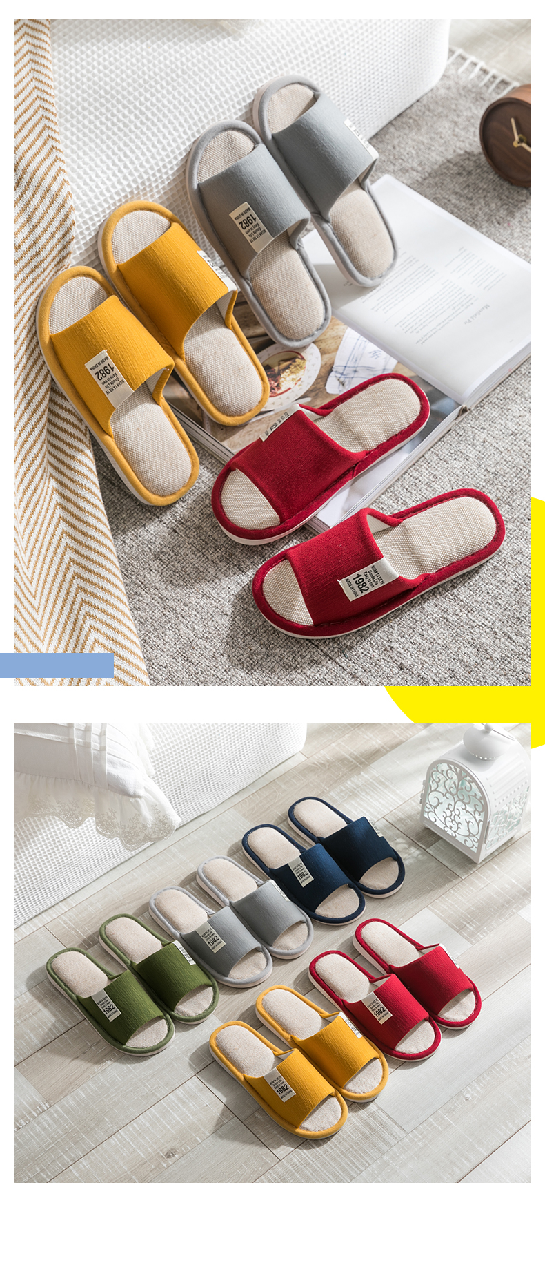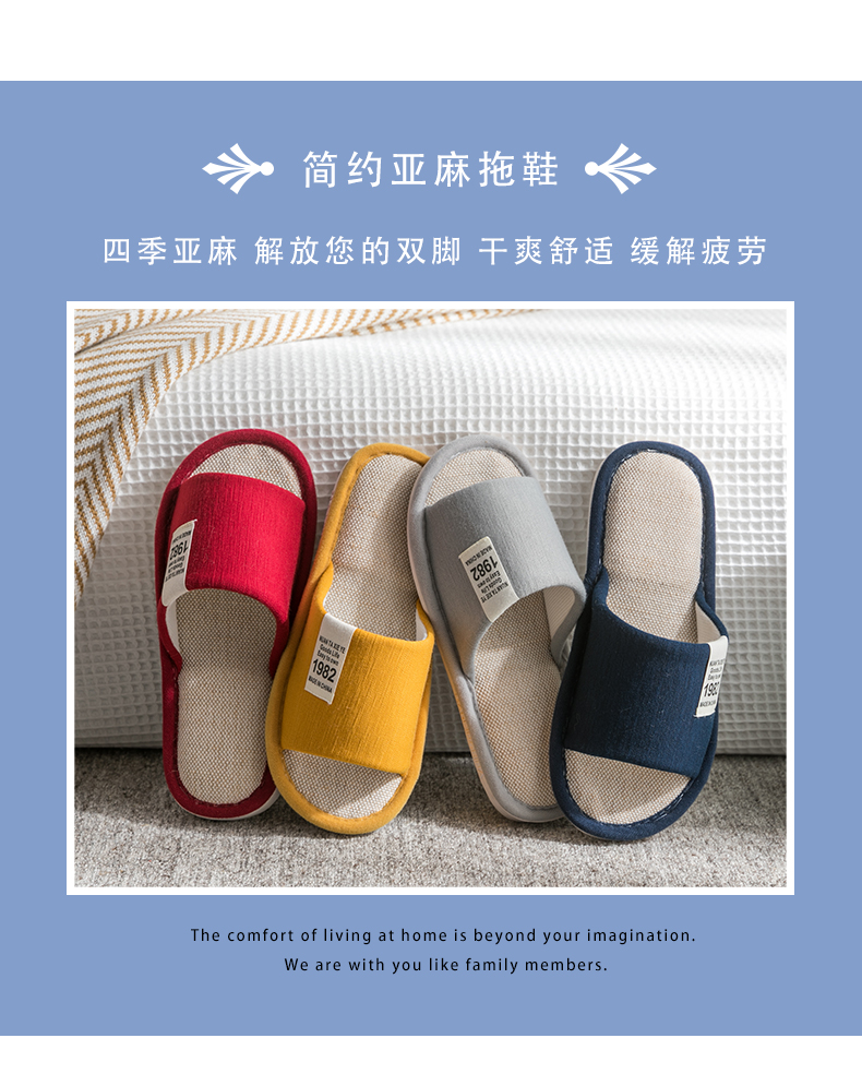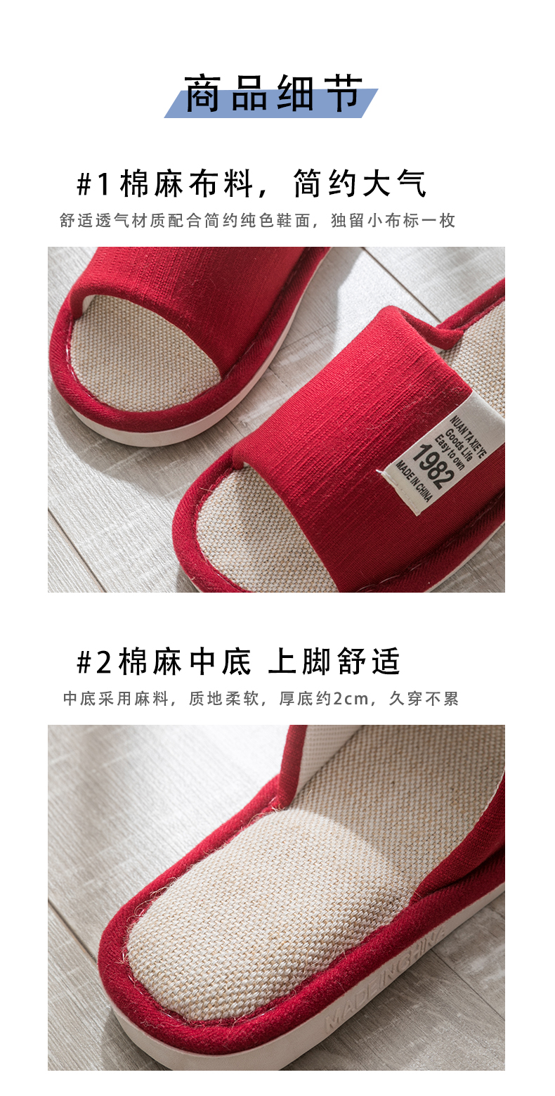 Тапочки, демисезонная нескользящая обувь для влюбленных, мягкая подошва, из хлопка и льна