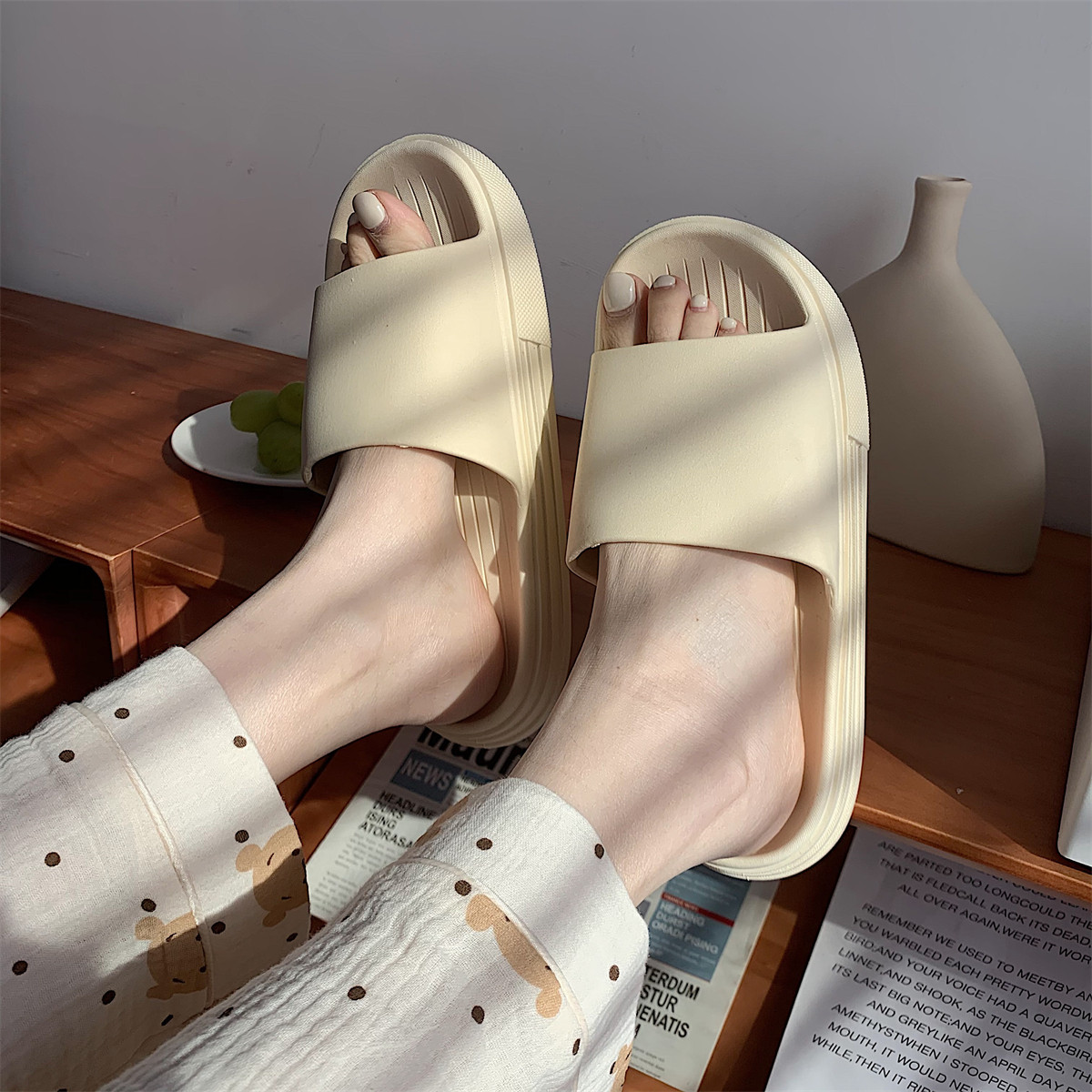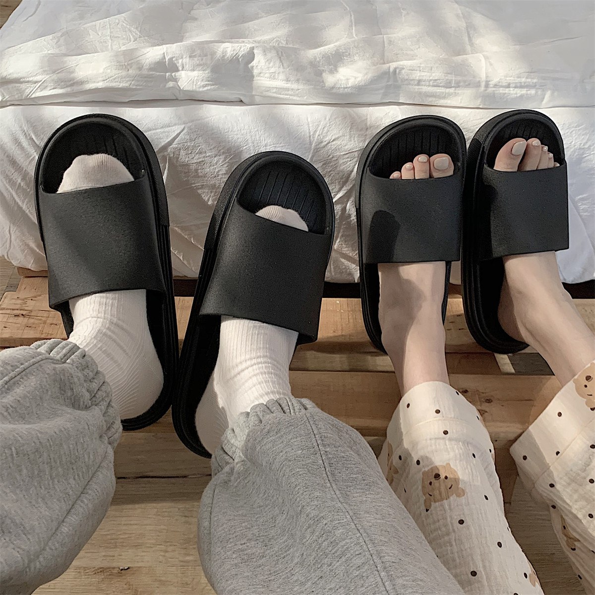 Тонкие японские нескользящие домашние тапочки для ванны, простой и элегантный дизайн, для влюбленных, мягкая подошва
