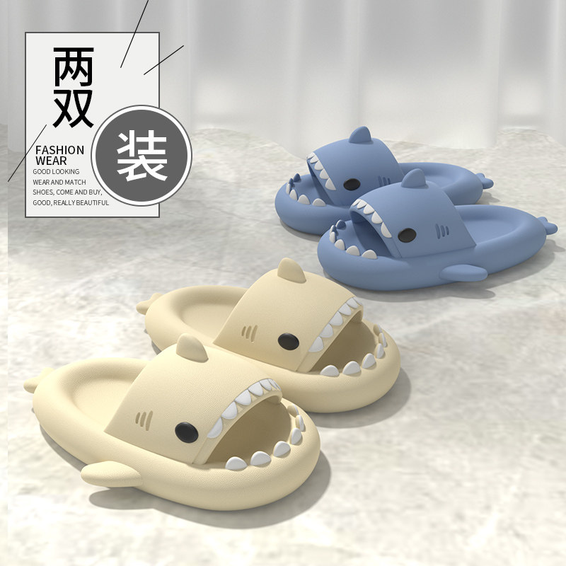 Антибактериальная дезодорированная акула, летние тапочки, нескользящая обувь для ванны, слайдеры для влюбленных
