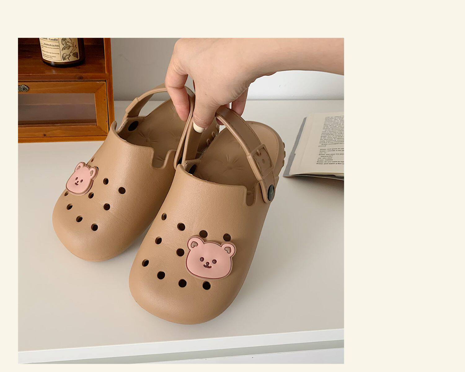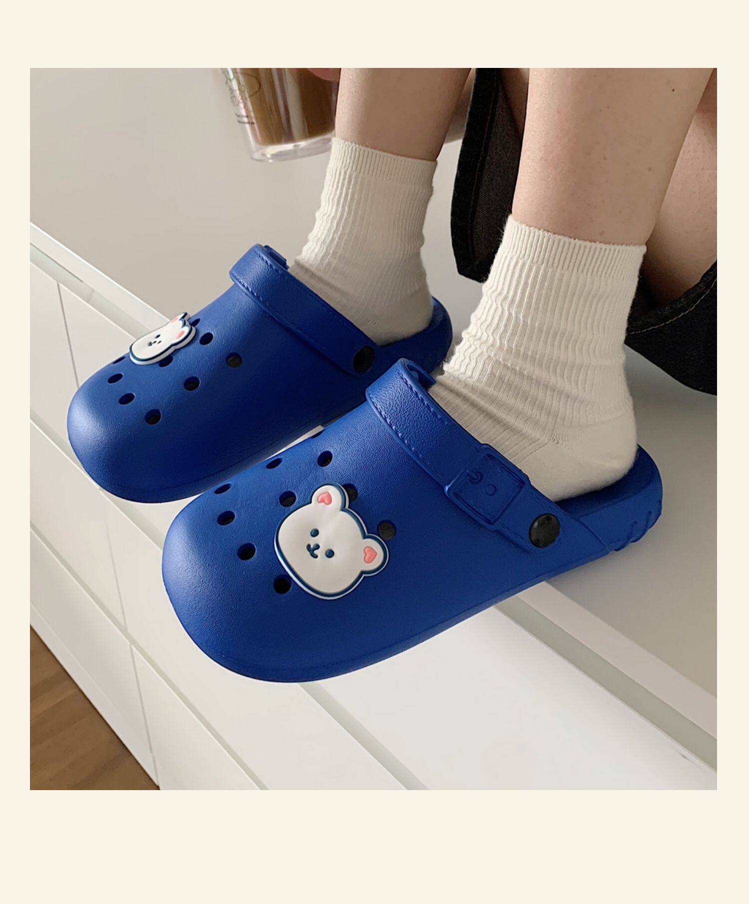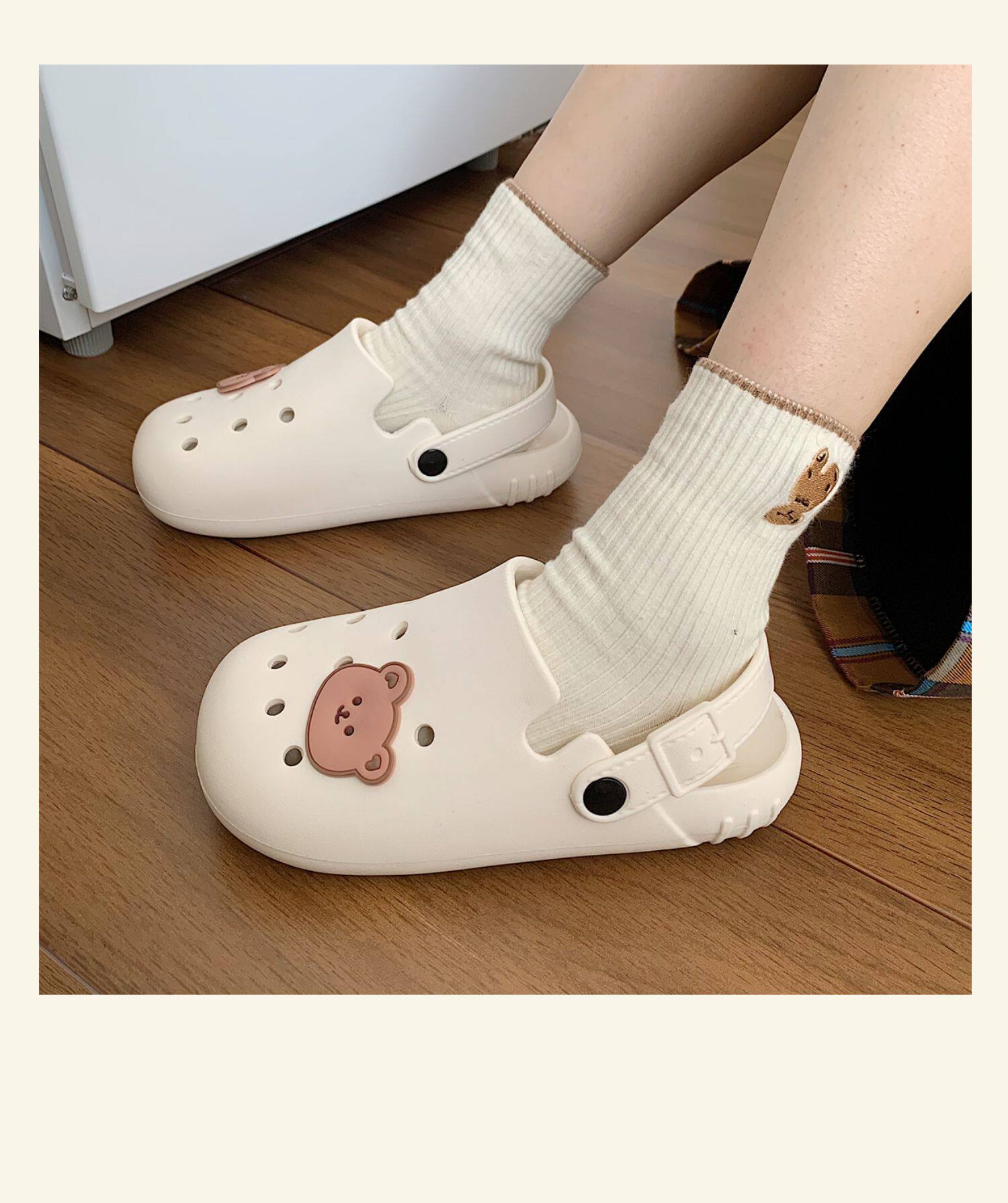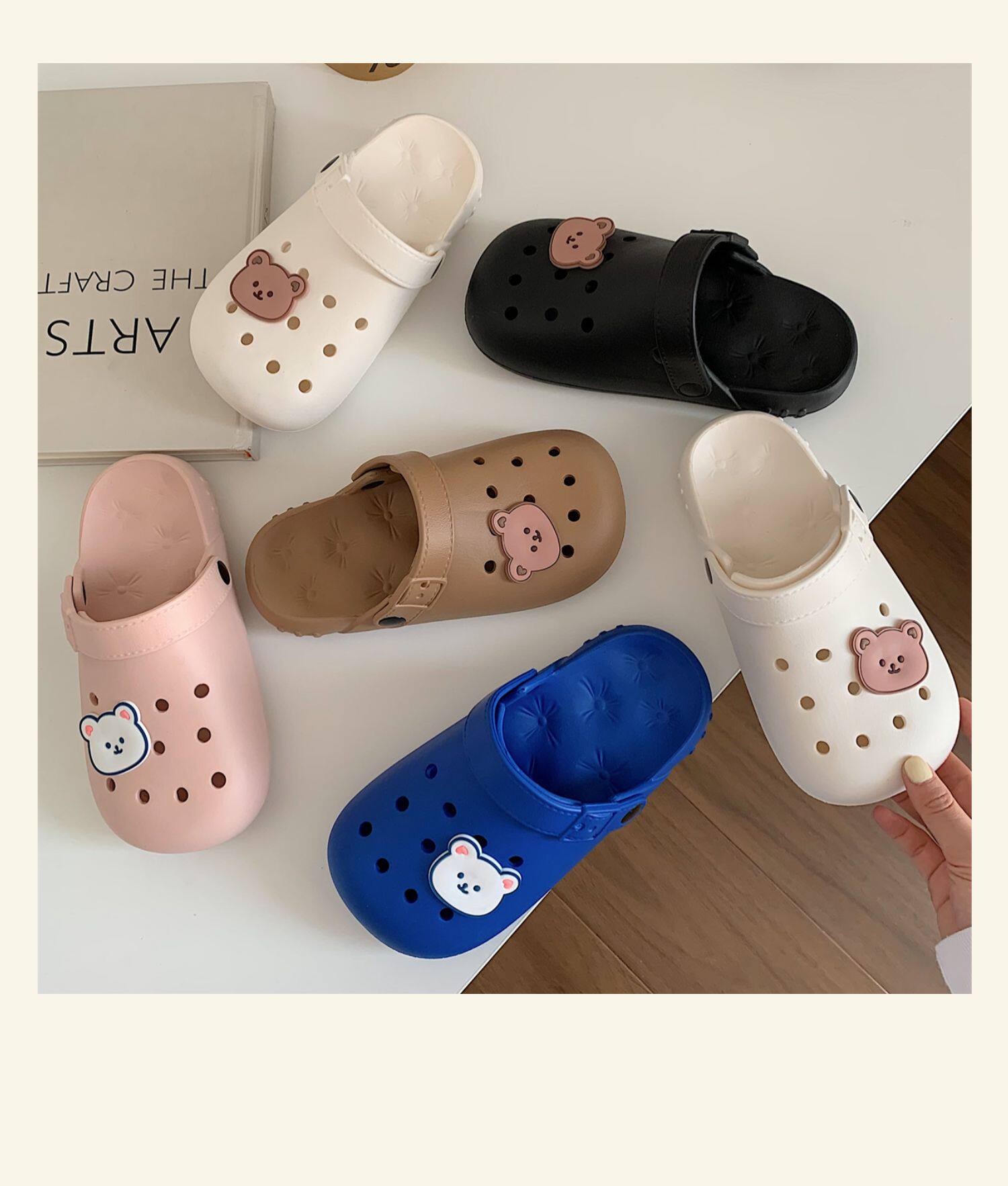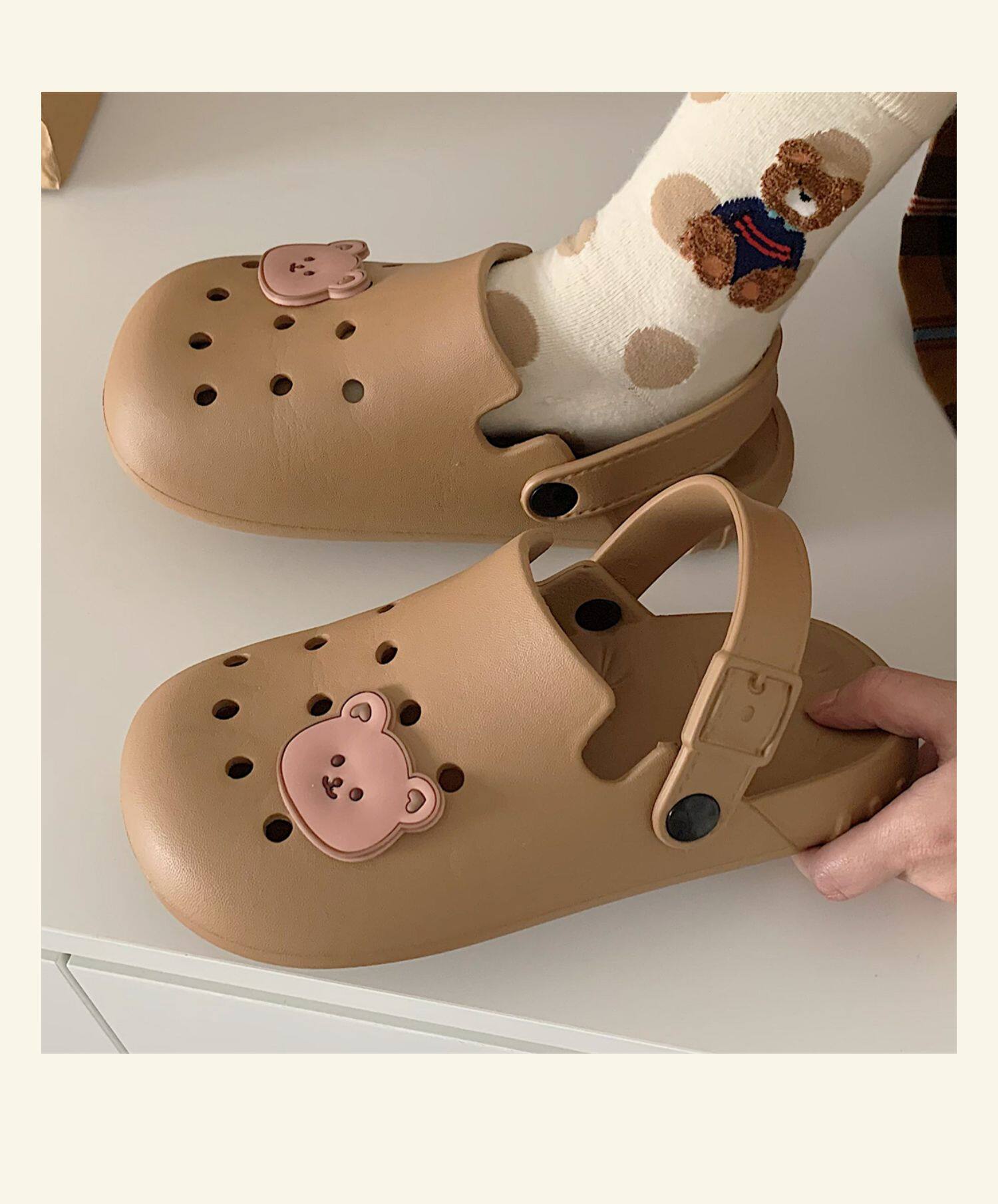 Тонкая милая нескользящая пляжная обувь, с медвежатами