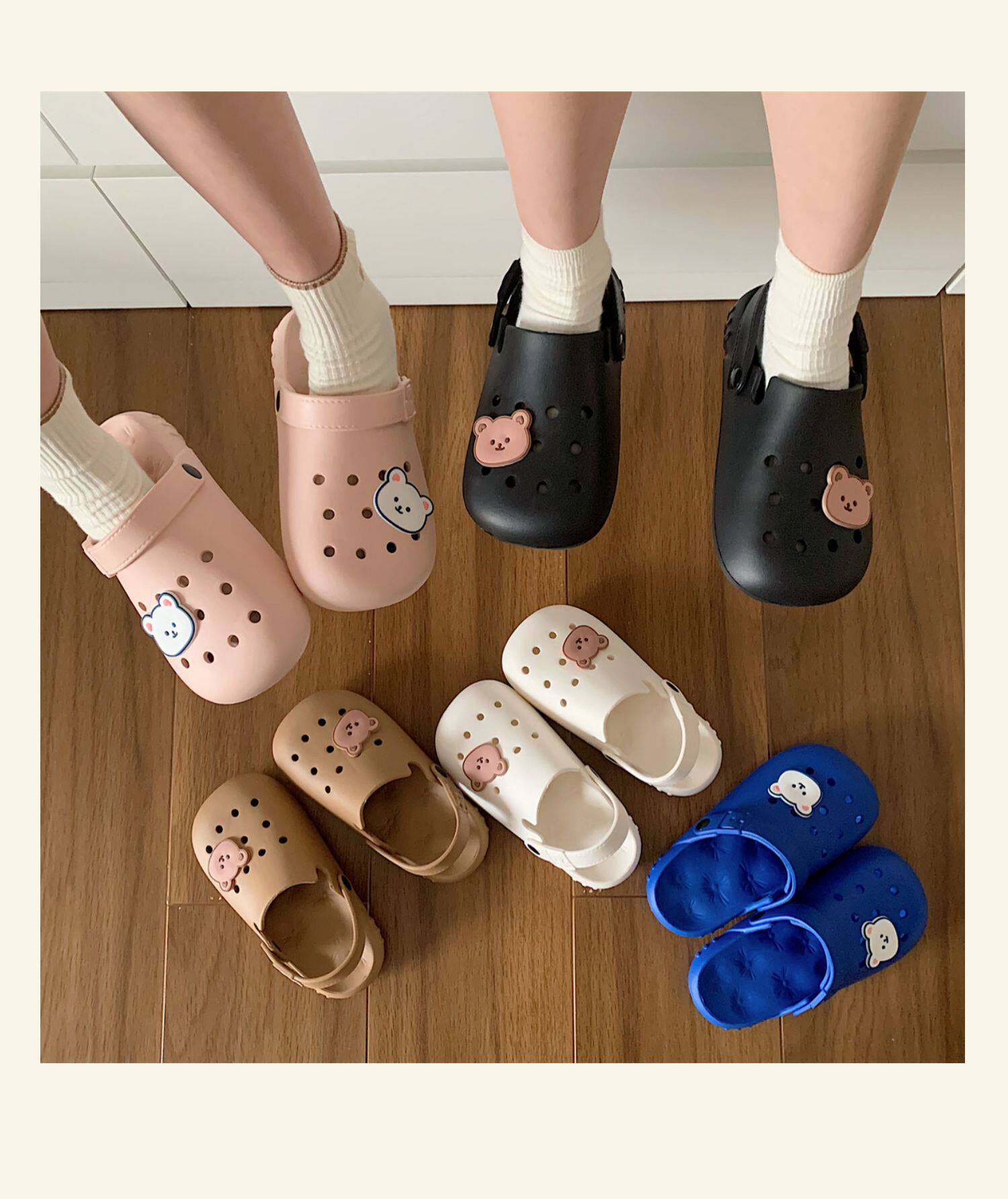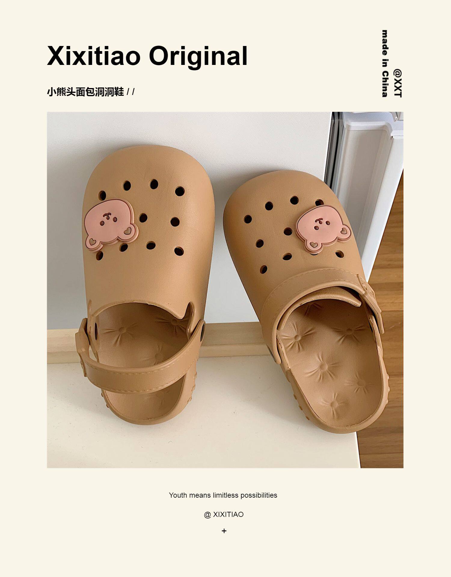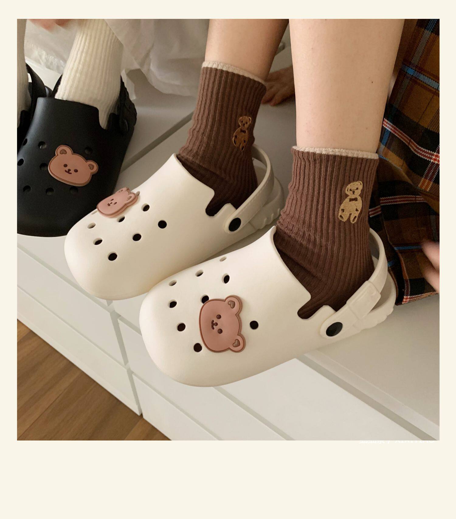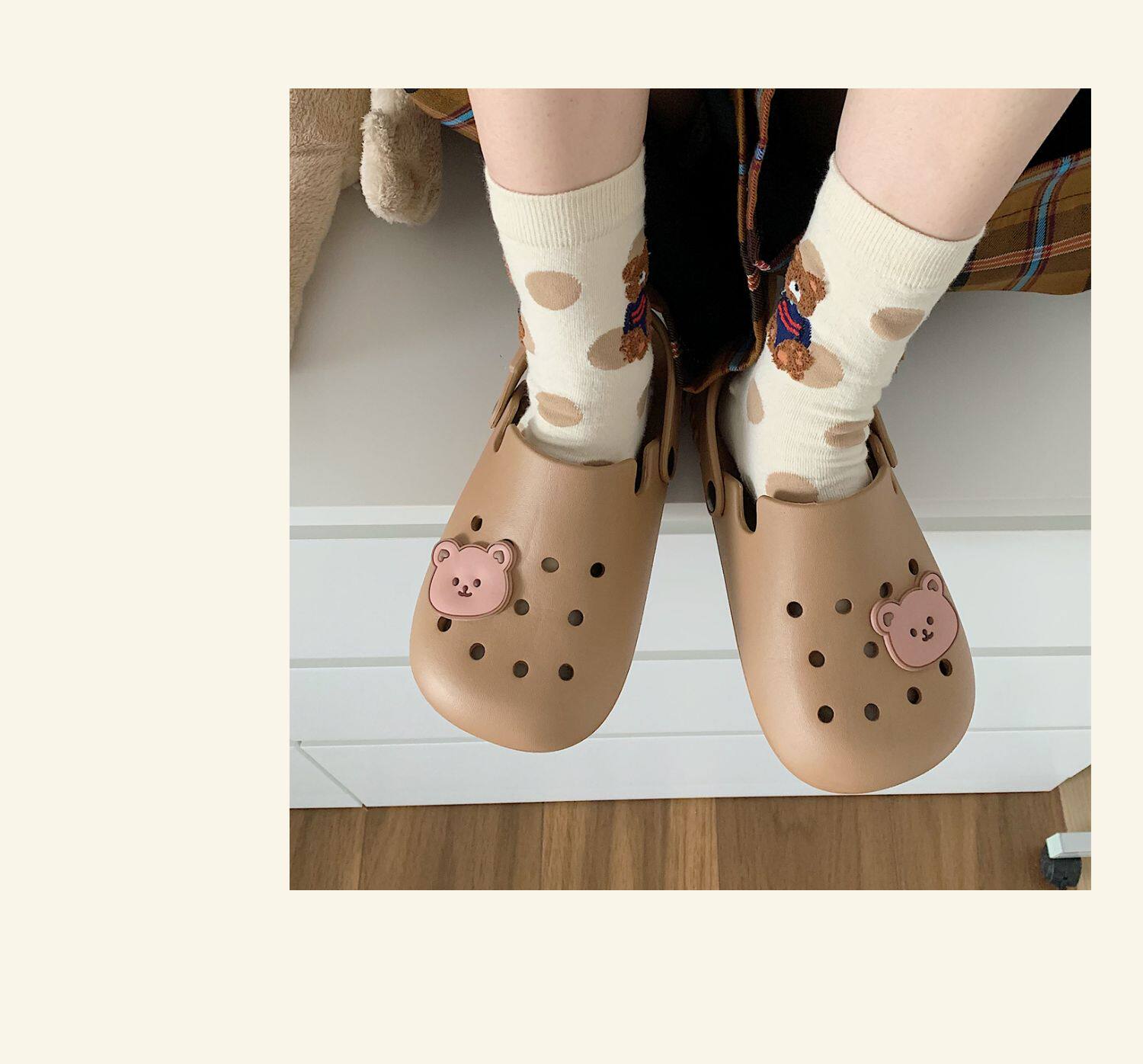 Тонкая милая нескользящая пляжная обувь, с медвежатами