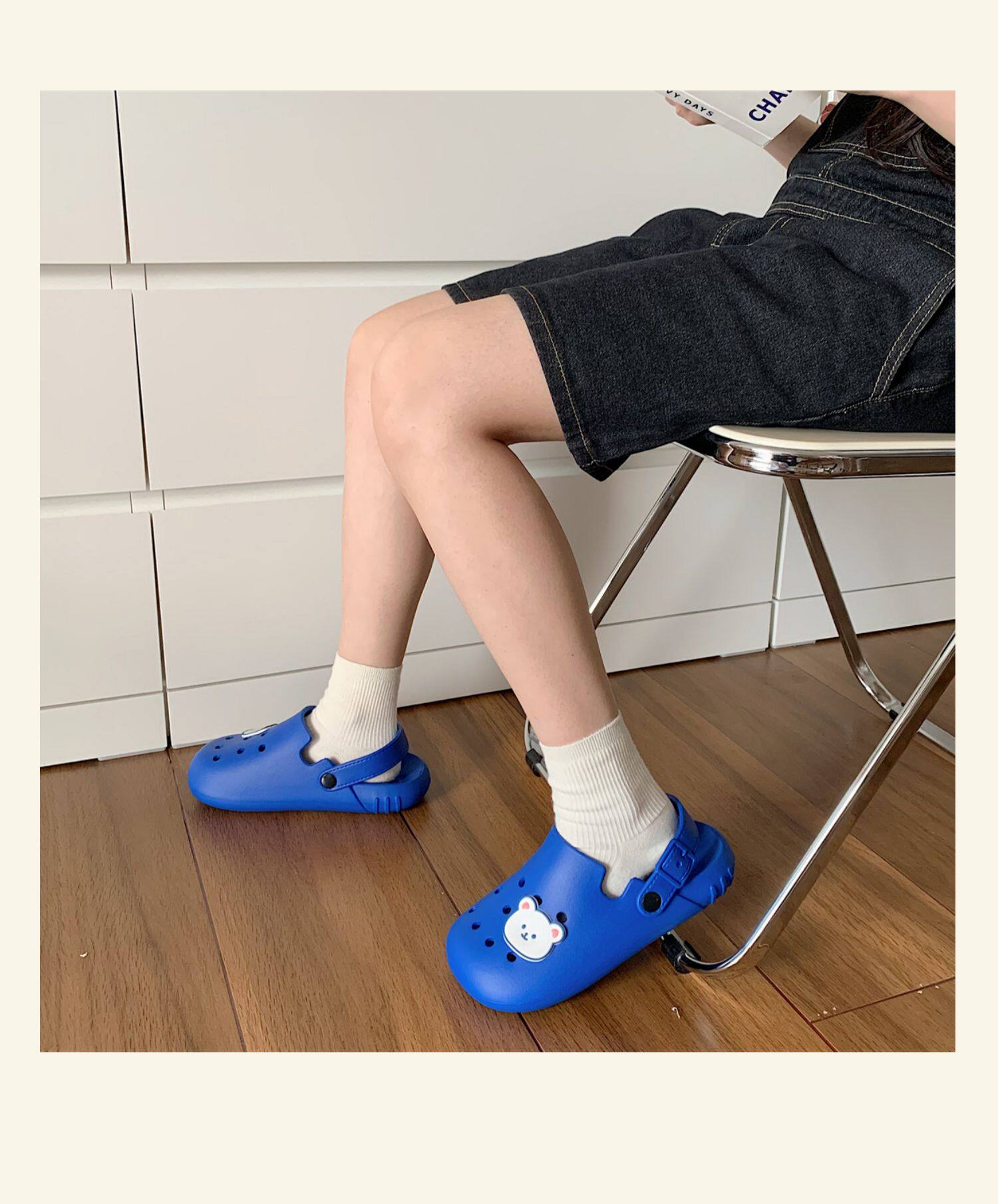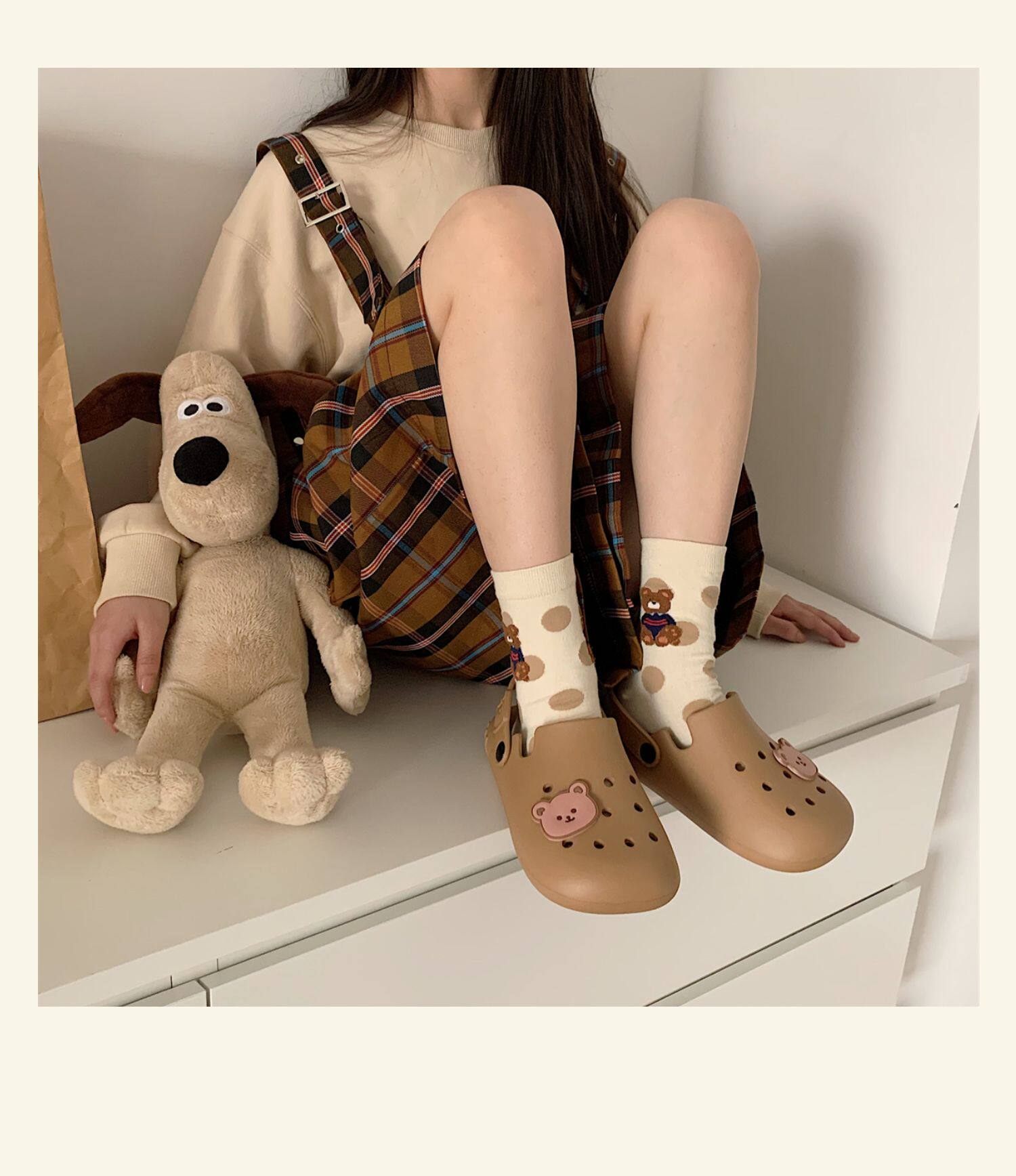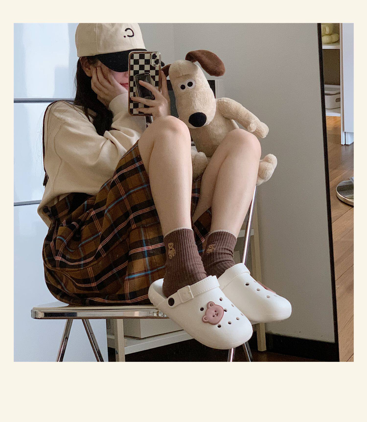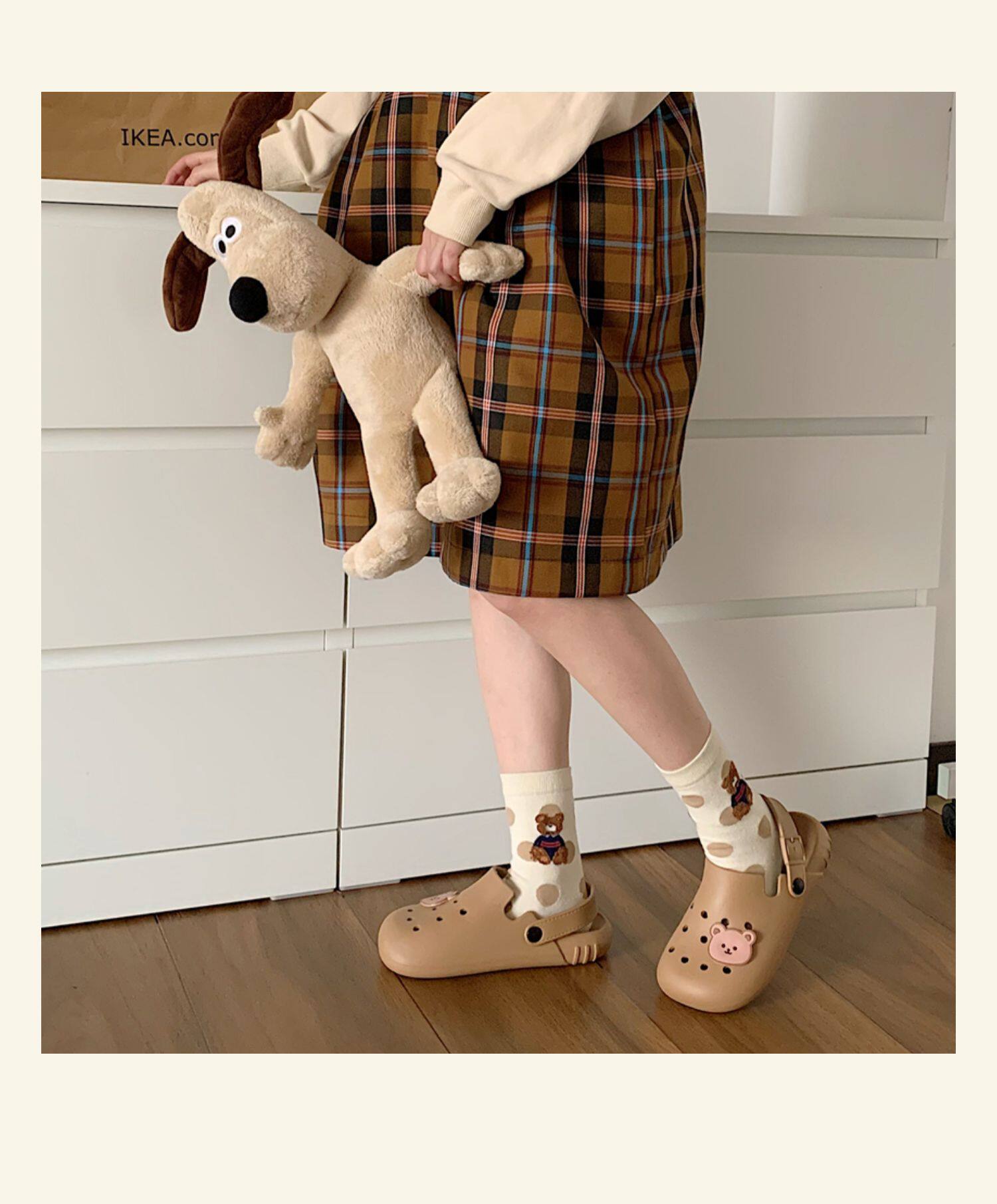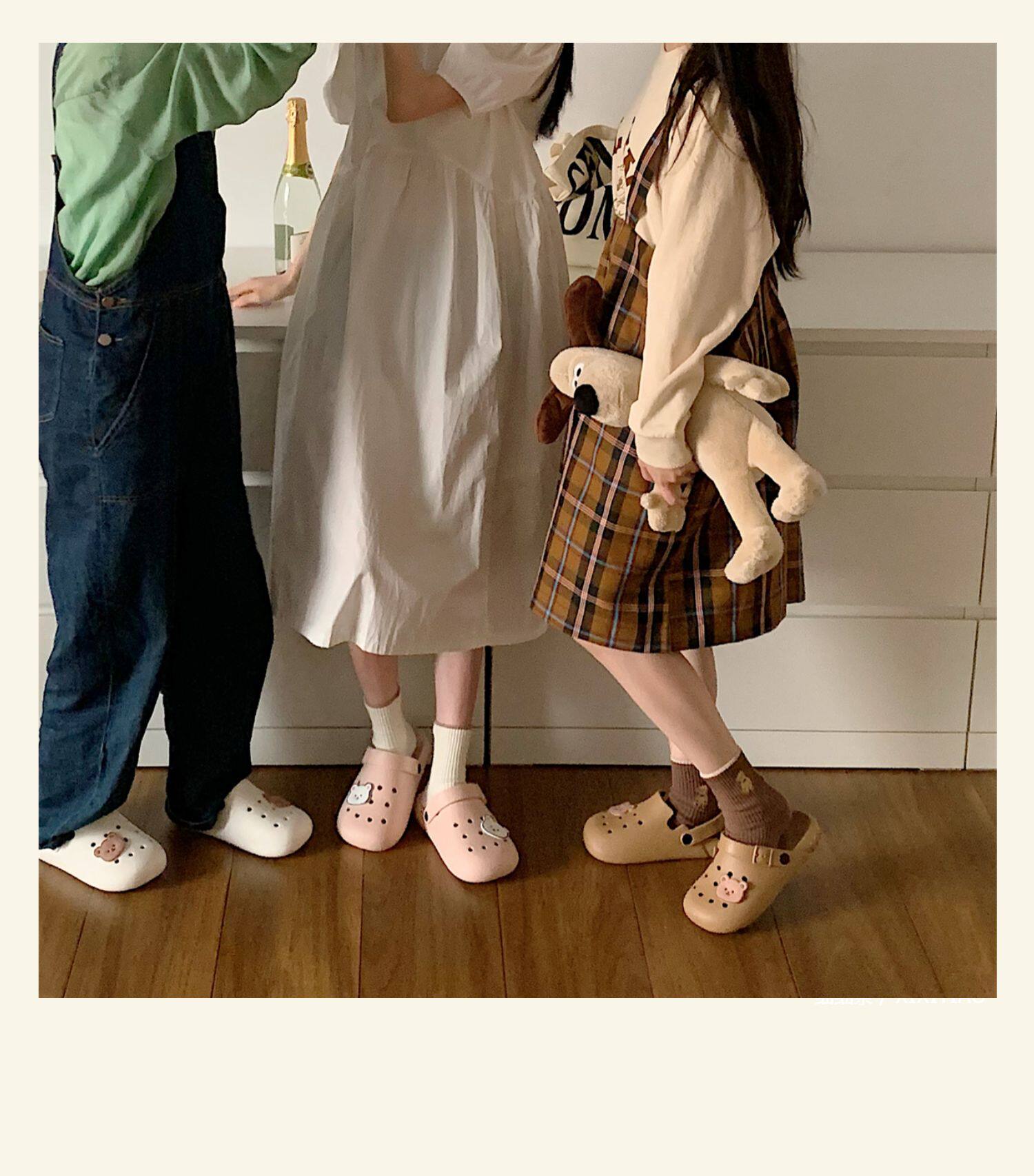 Тонкая милая нескользящая пляжная обувь, с медвежатами