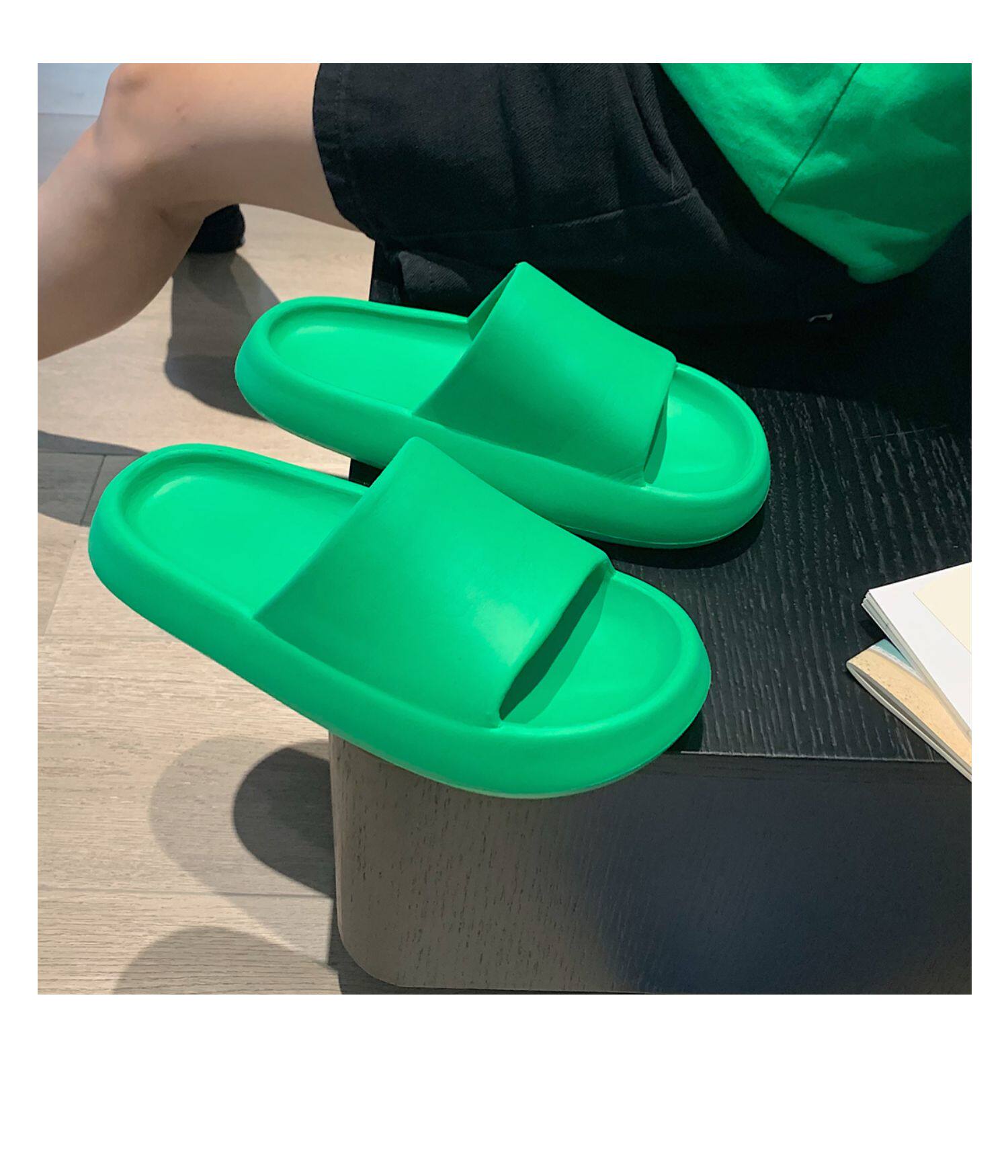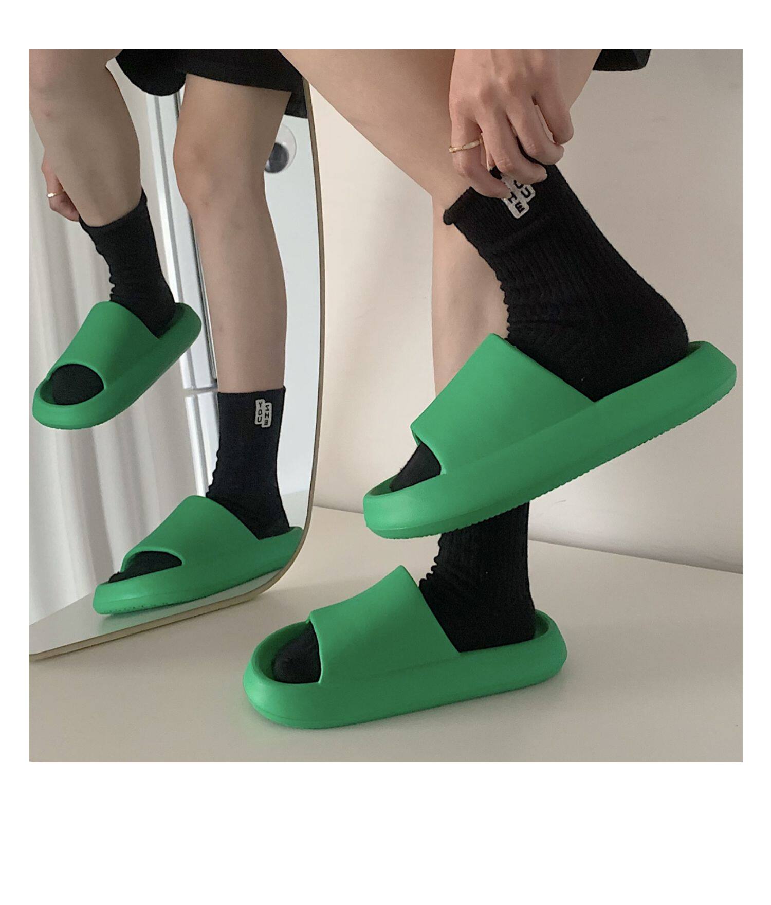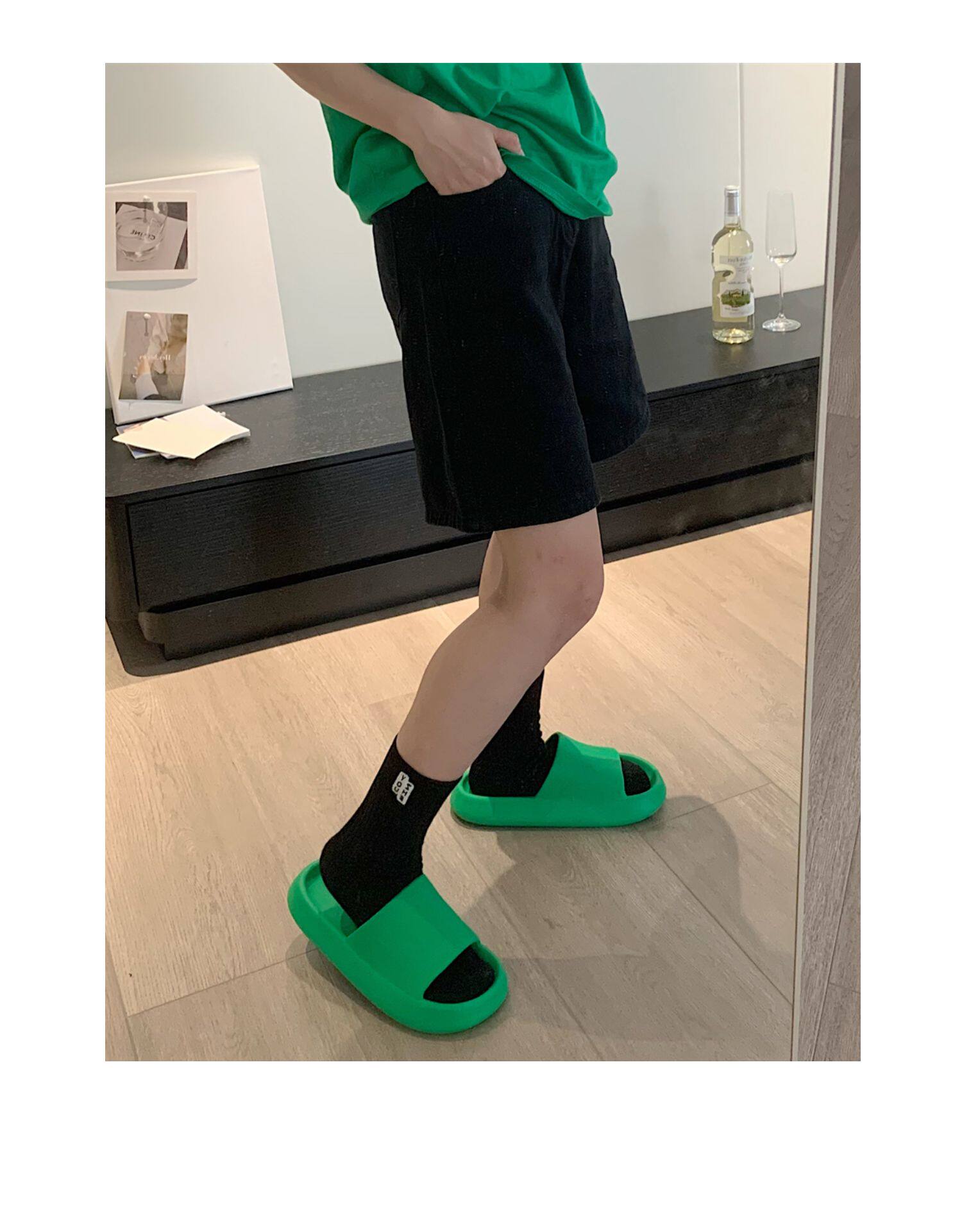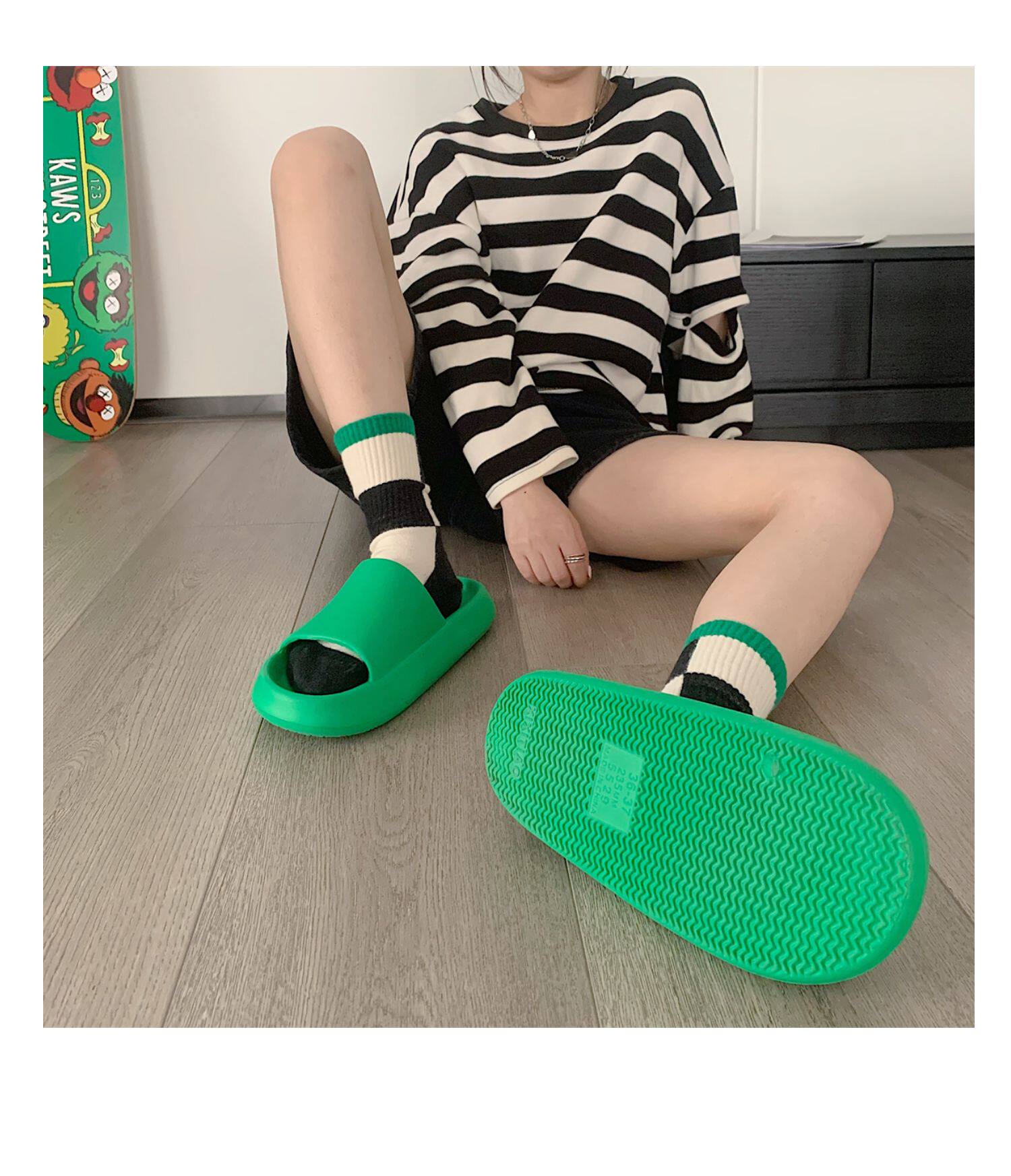 细细条 Зеленые нескользящие тапочки подходит для мужчин и женщин, для влюбленных