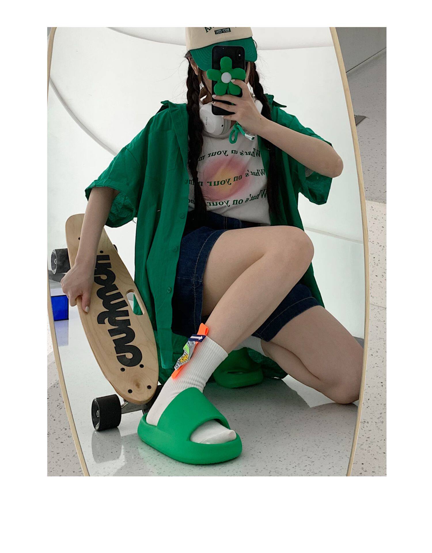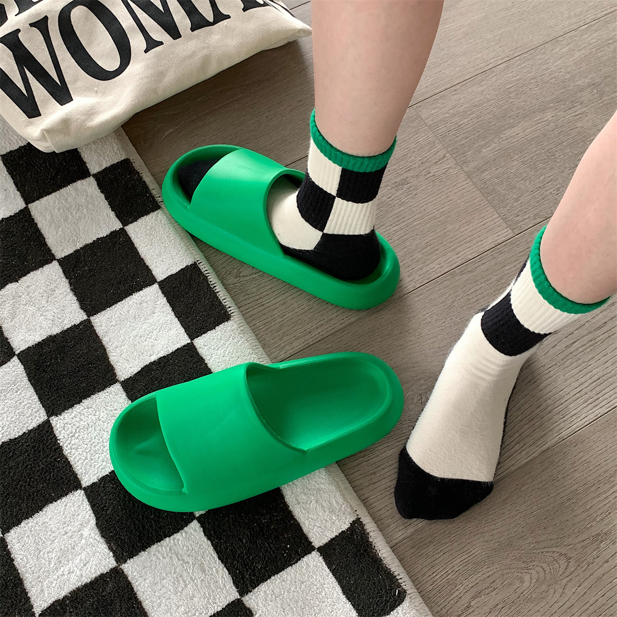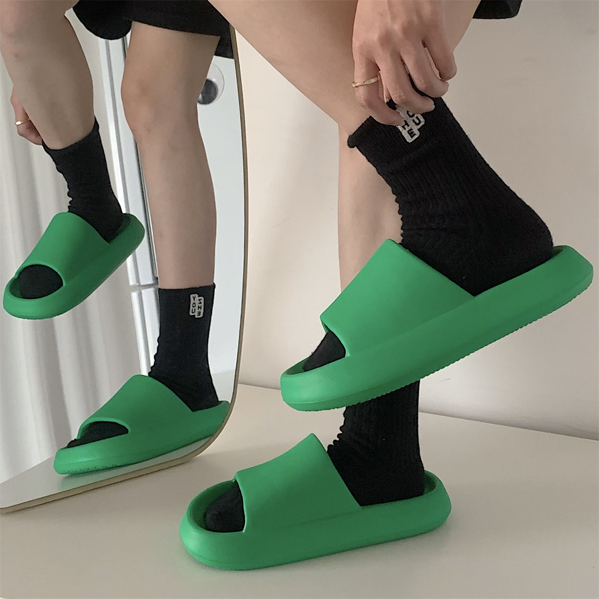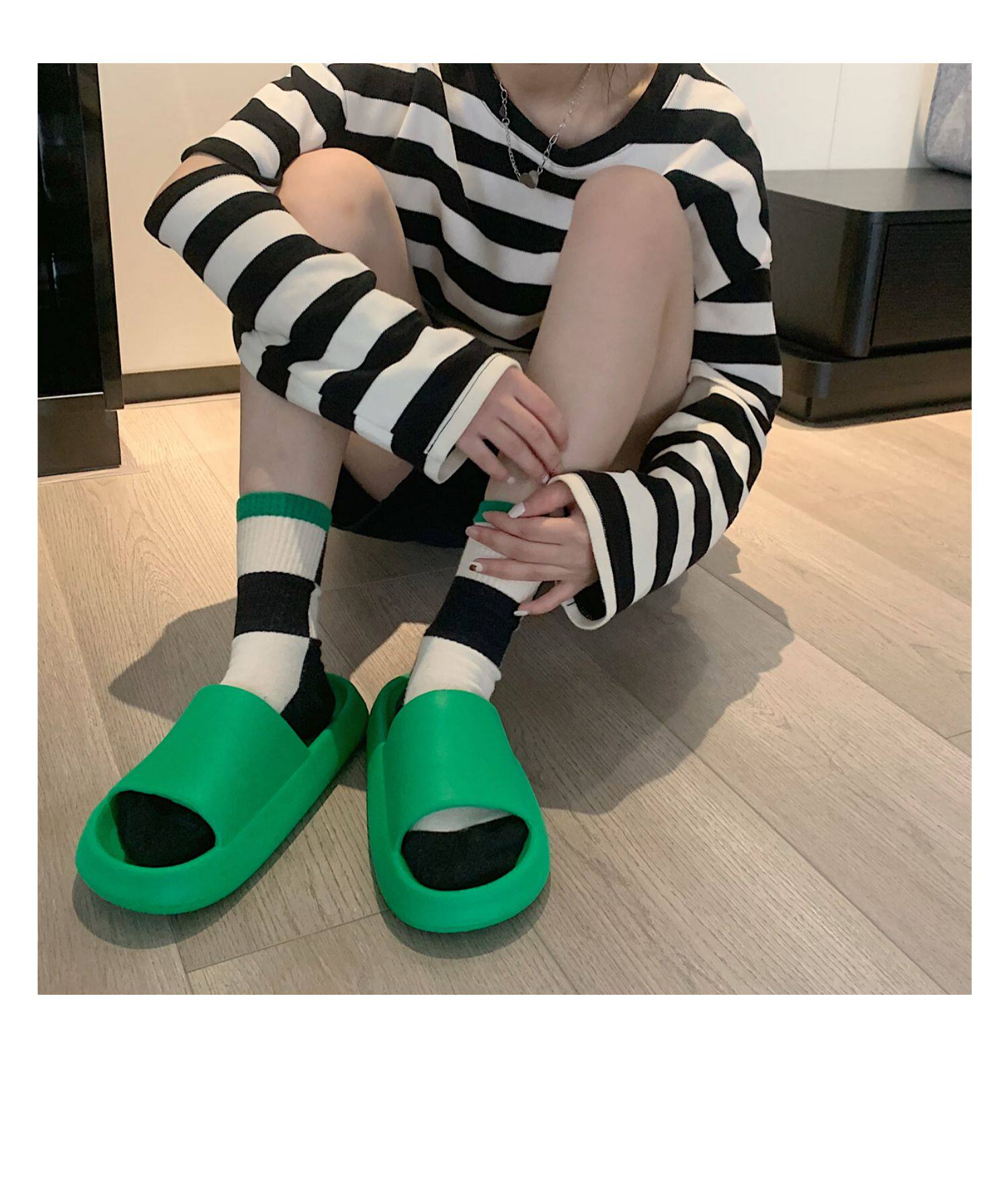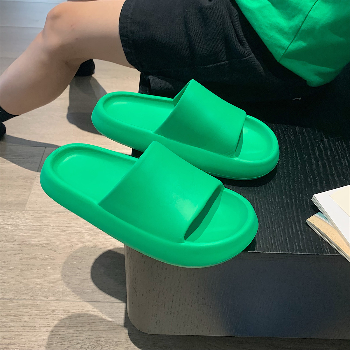 细细条 Зеленые нескользящие тапочки подходит для мужчин и женщин, для влюбленных