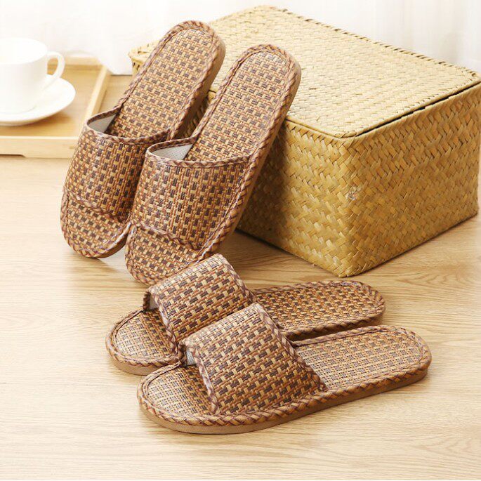 Плетеные нескользящие тапочки для влюбленных, соломенные слайдеры
