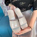 2021 Женские летние тапочки носят толстую каблук, толстую каблук, толстое сандаловое дерево, холодный холодный затяжение, анти -славик G Home Candy Пластиковые желе обувь