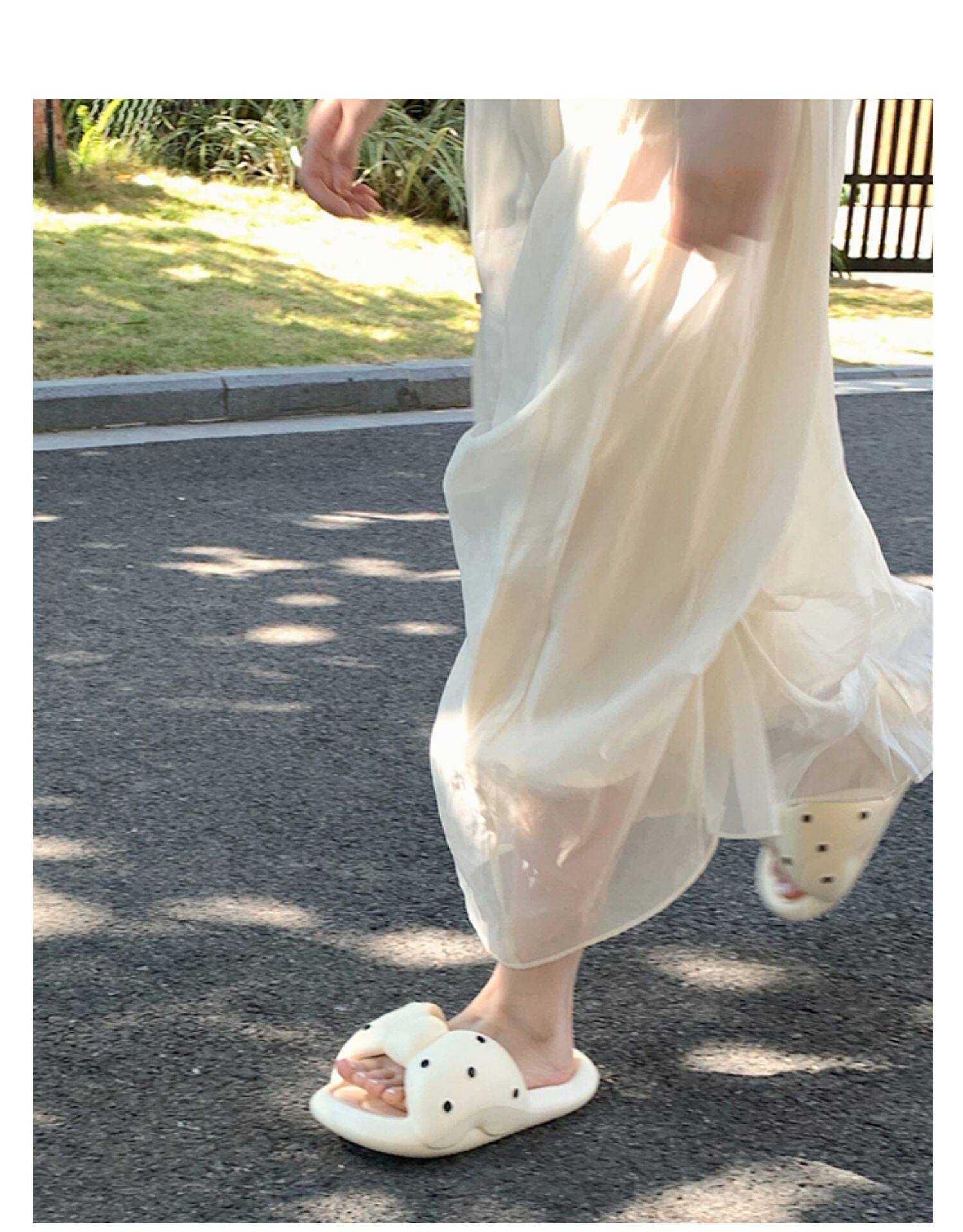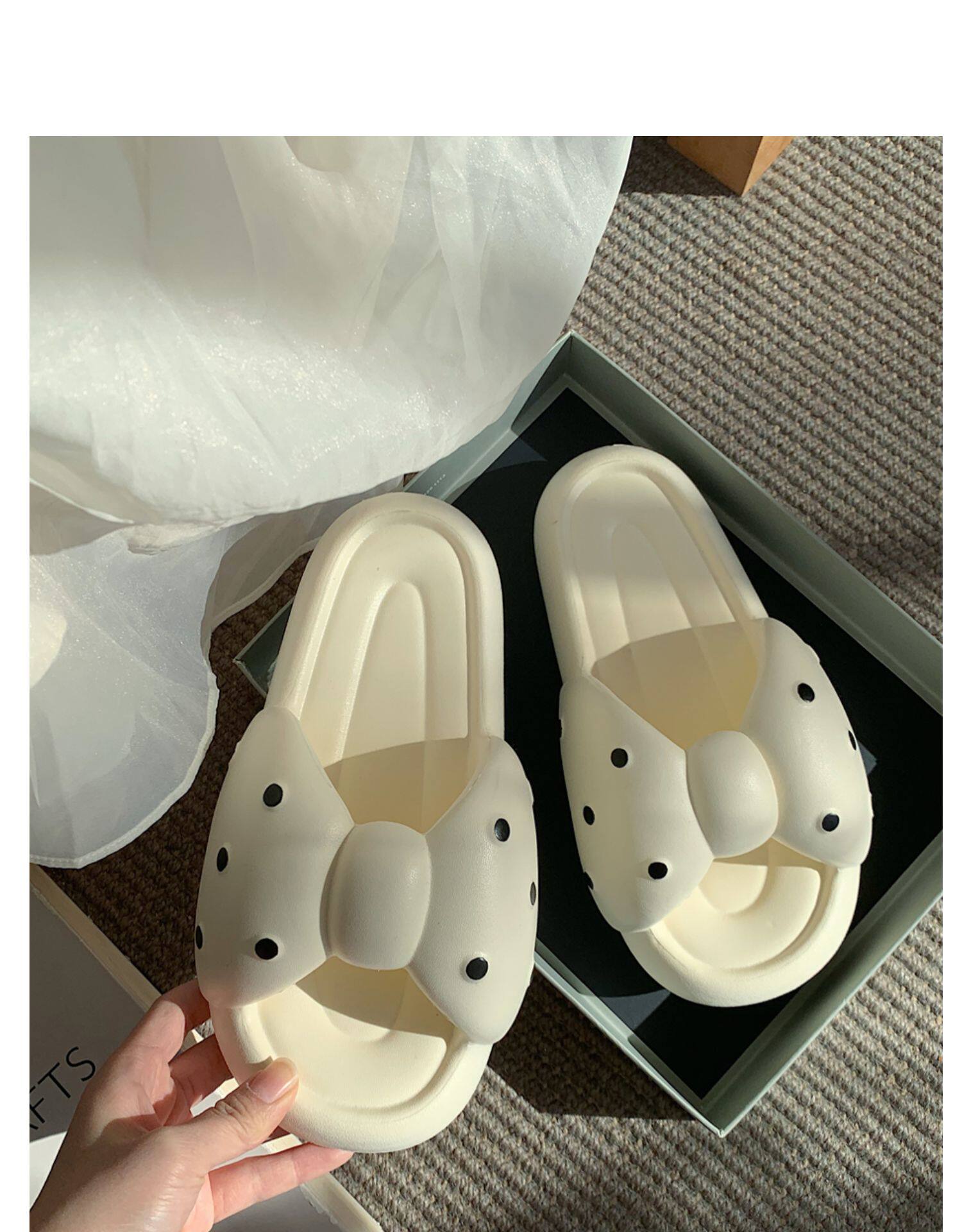 细细条 Летние модные тапочки с бантиком, нескользящая пляжная обувь, мягкая подошва