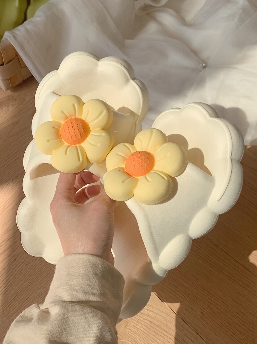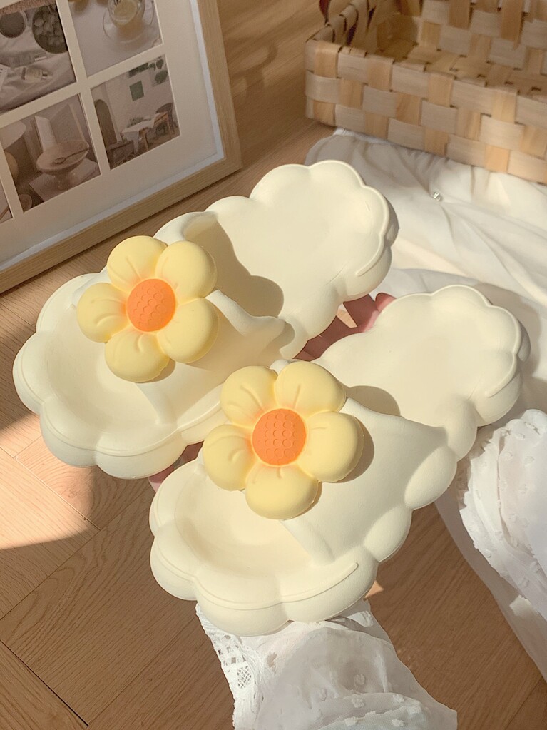 Тонкие милые трехмерные нескользящие тапочки, в цветочек