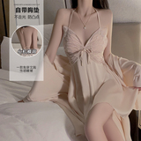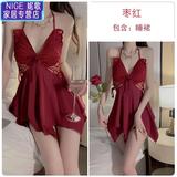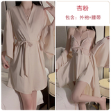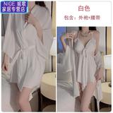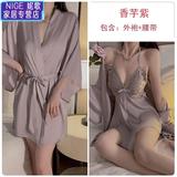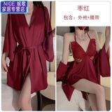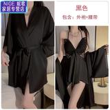 Сексуальная пижама, шелковый топ с чашечками с бантиком, кружевной банный халат, комплект, эффект подтяжки
