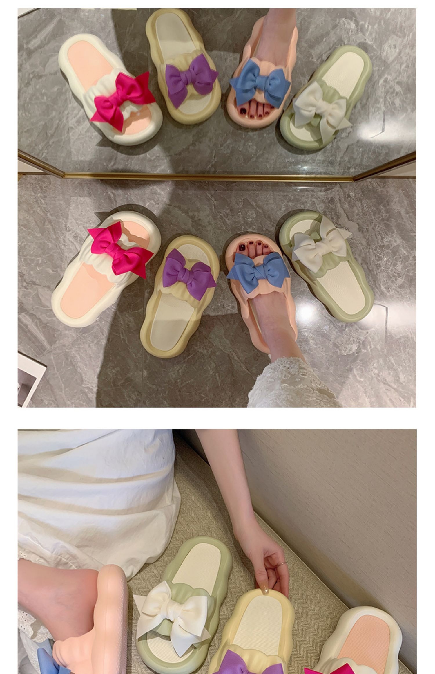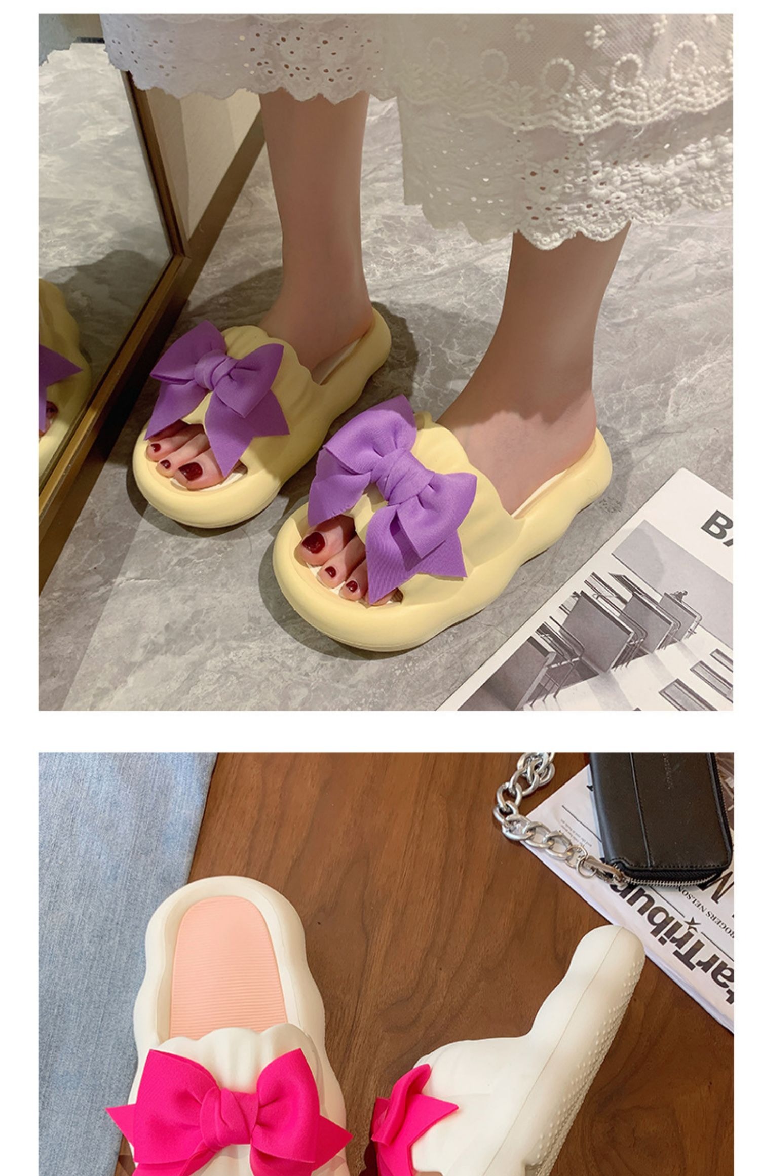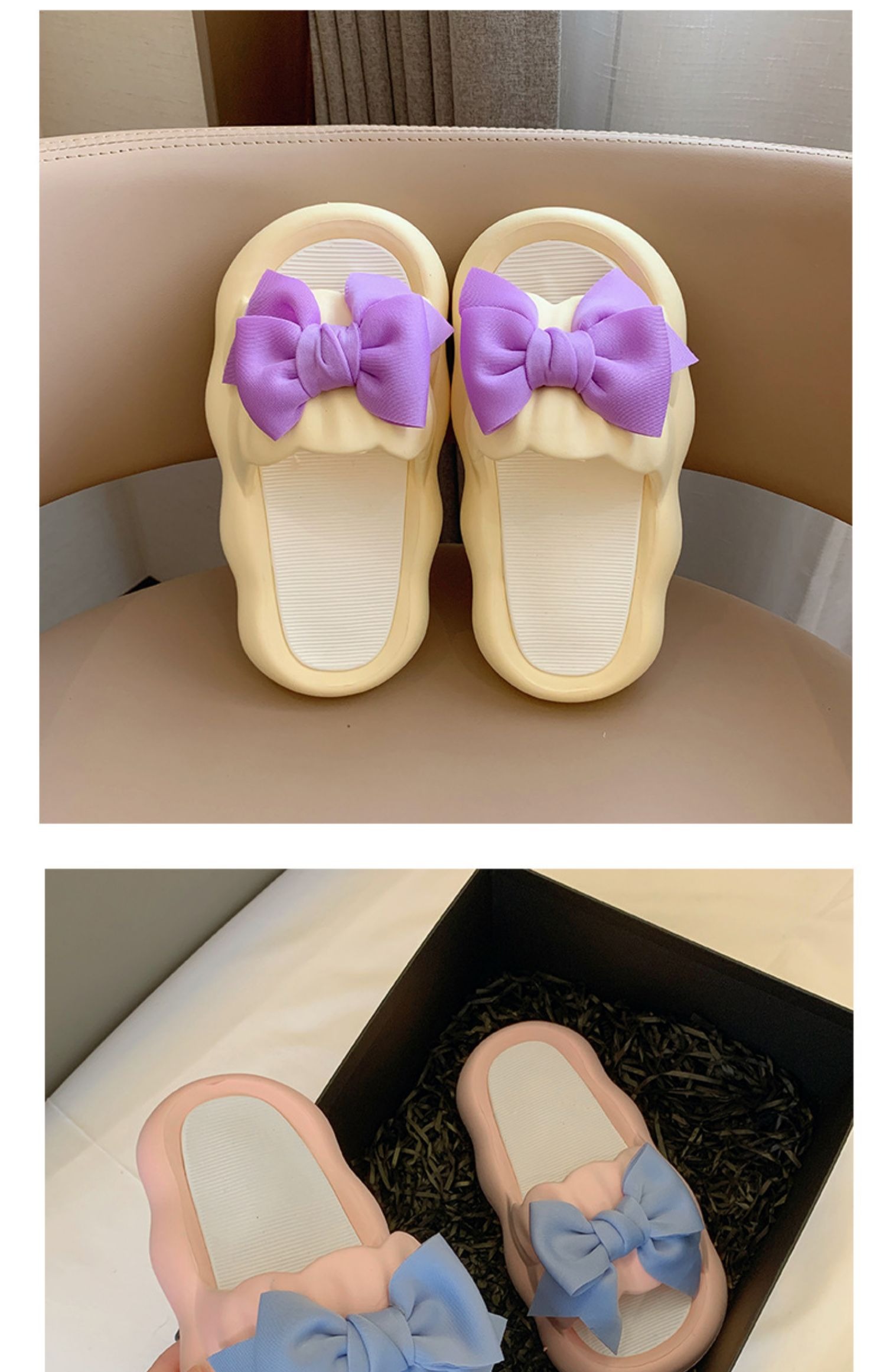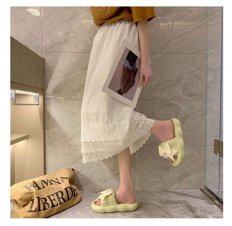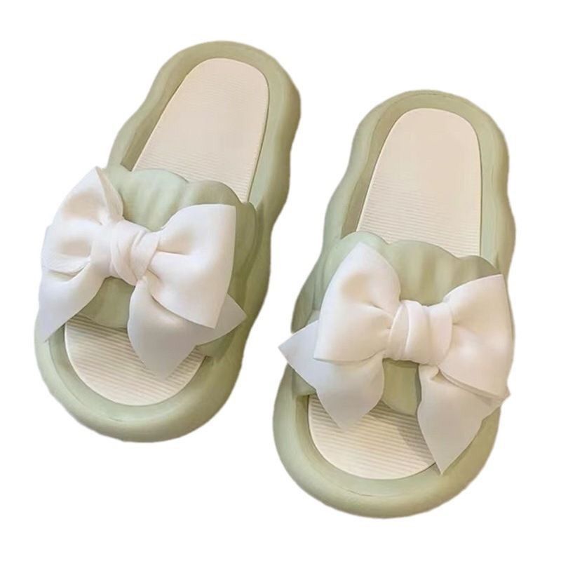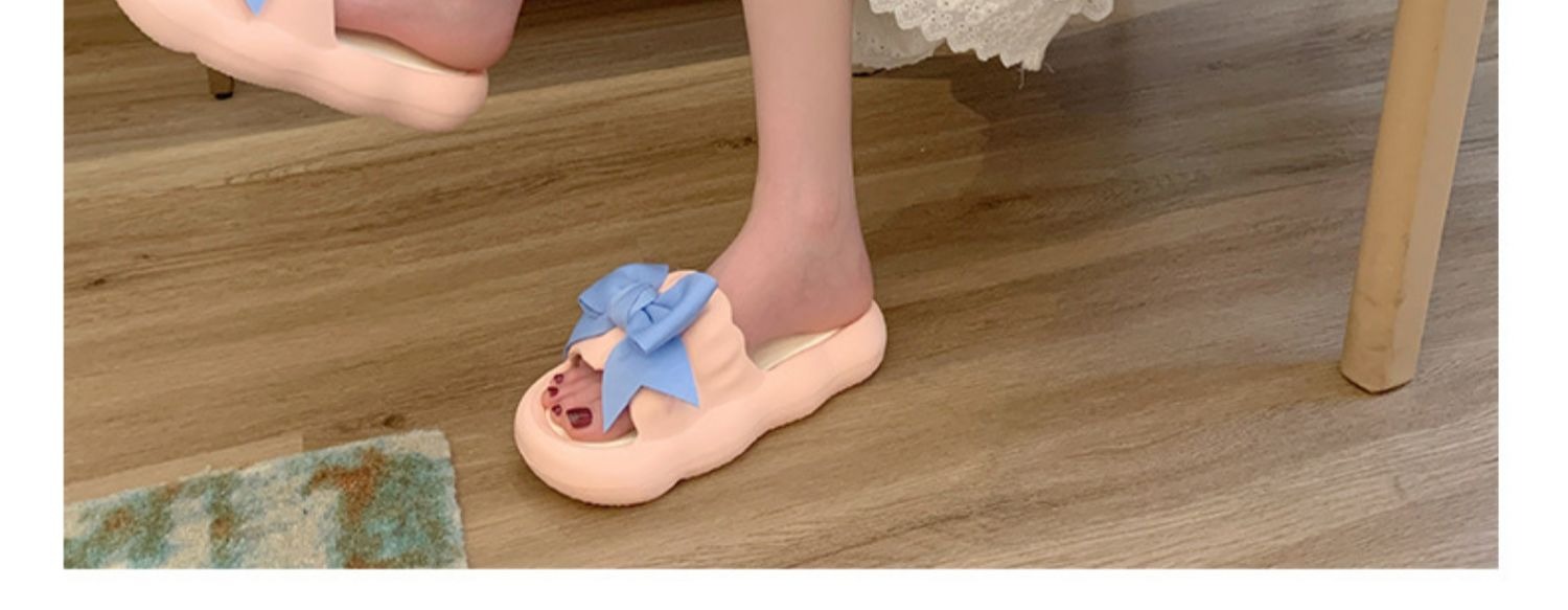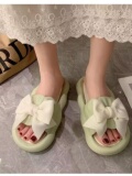 Летние милые слайдеры с бантиком на платформе, нескользящие тапочки