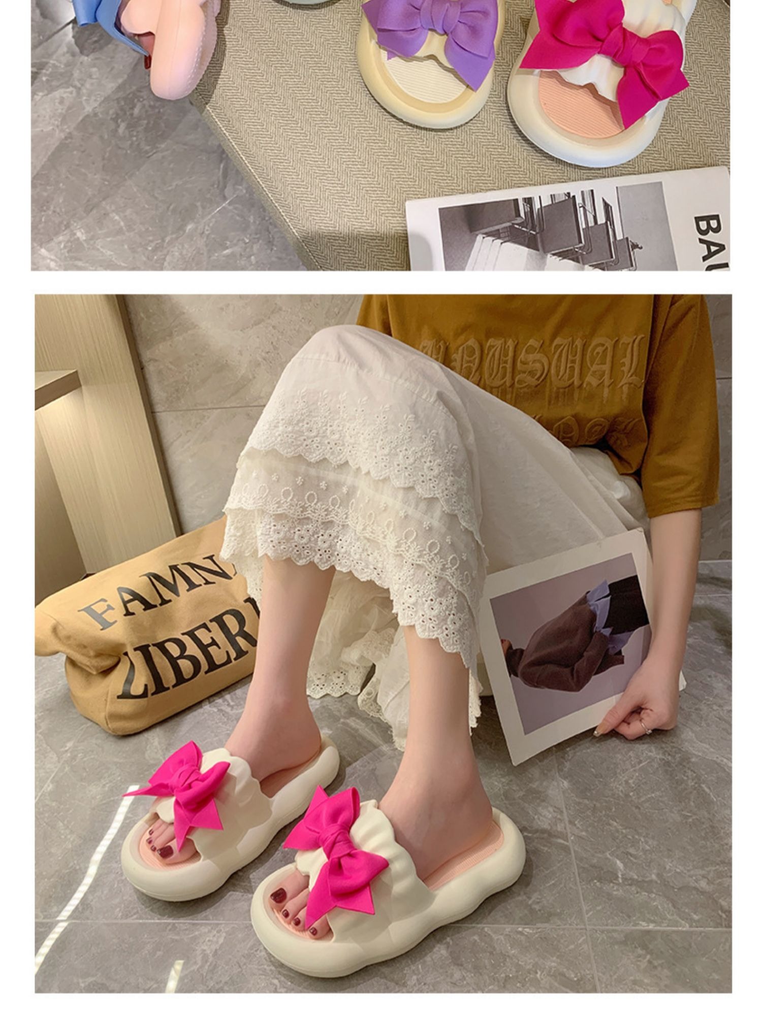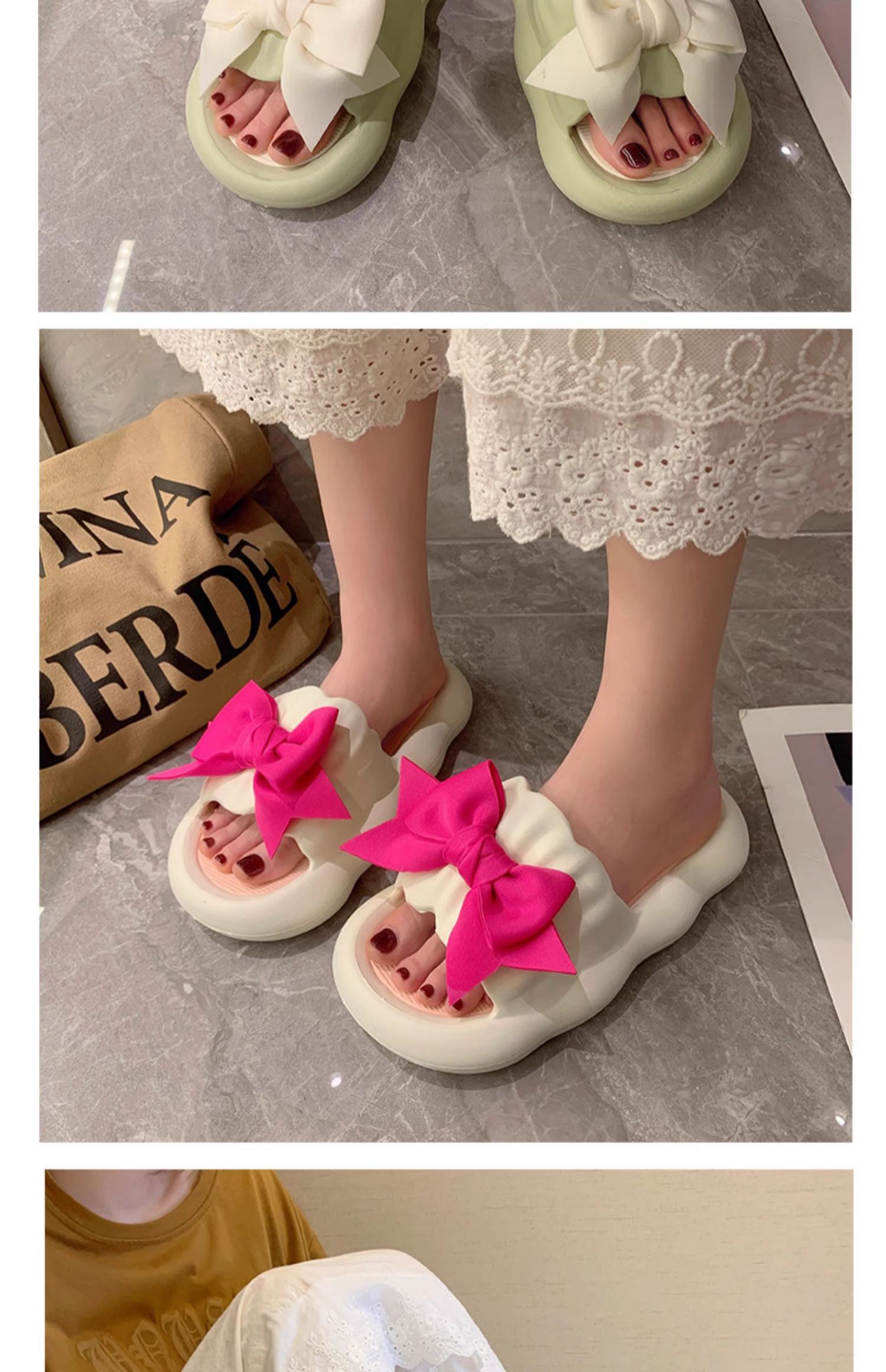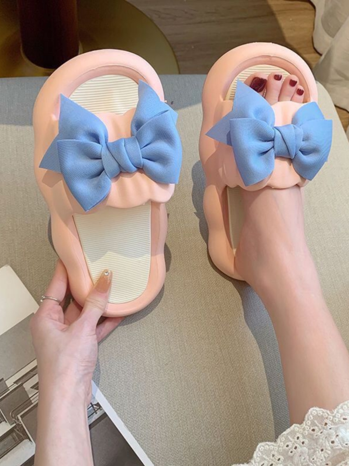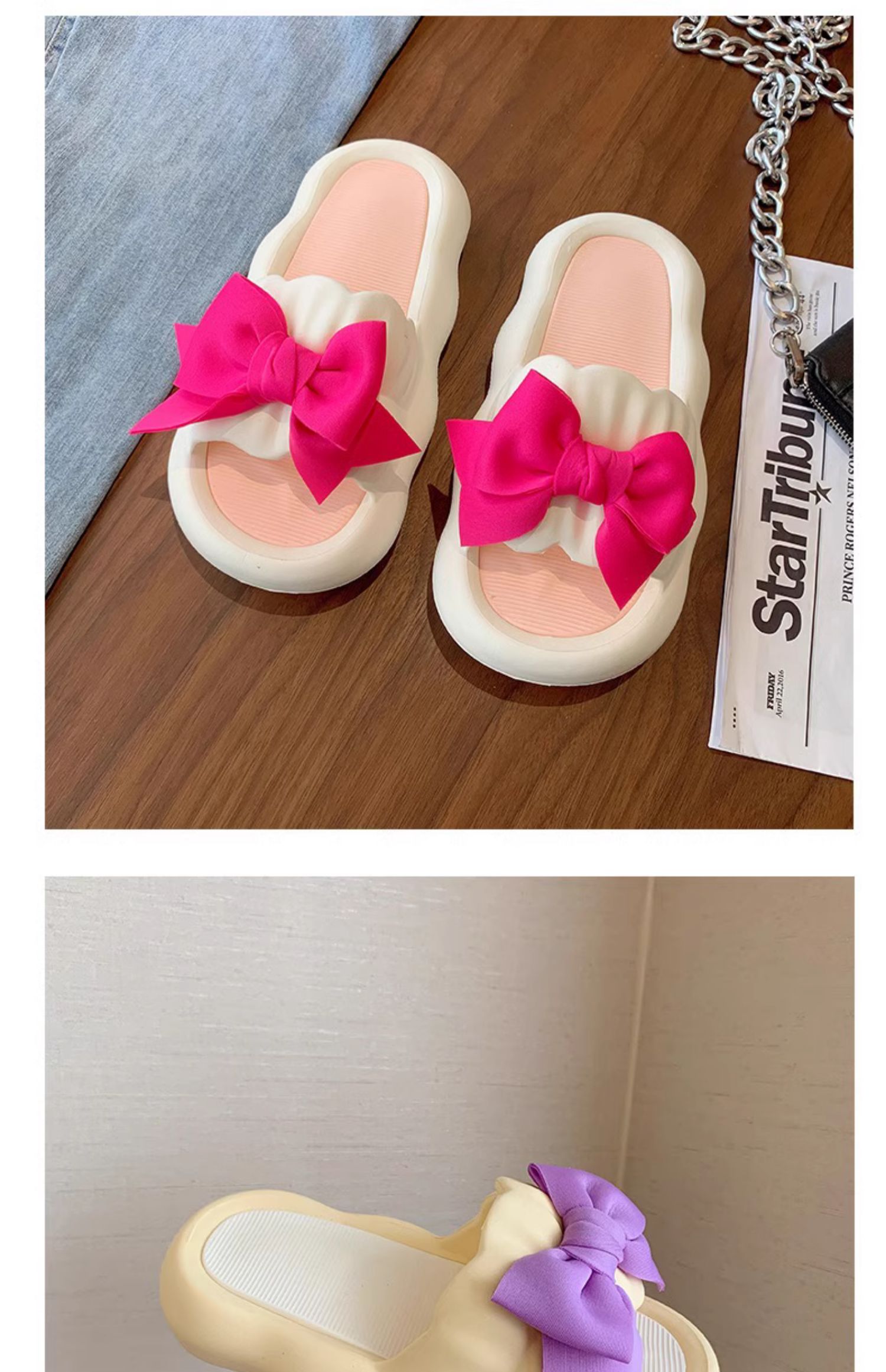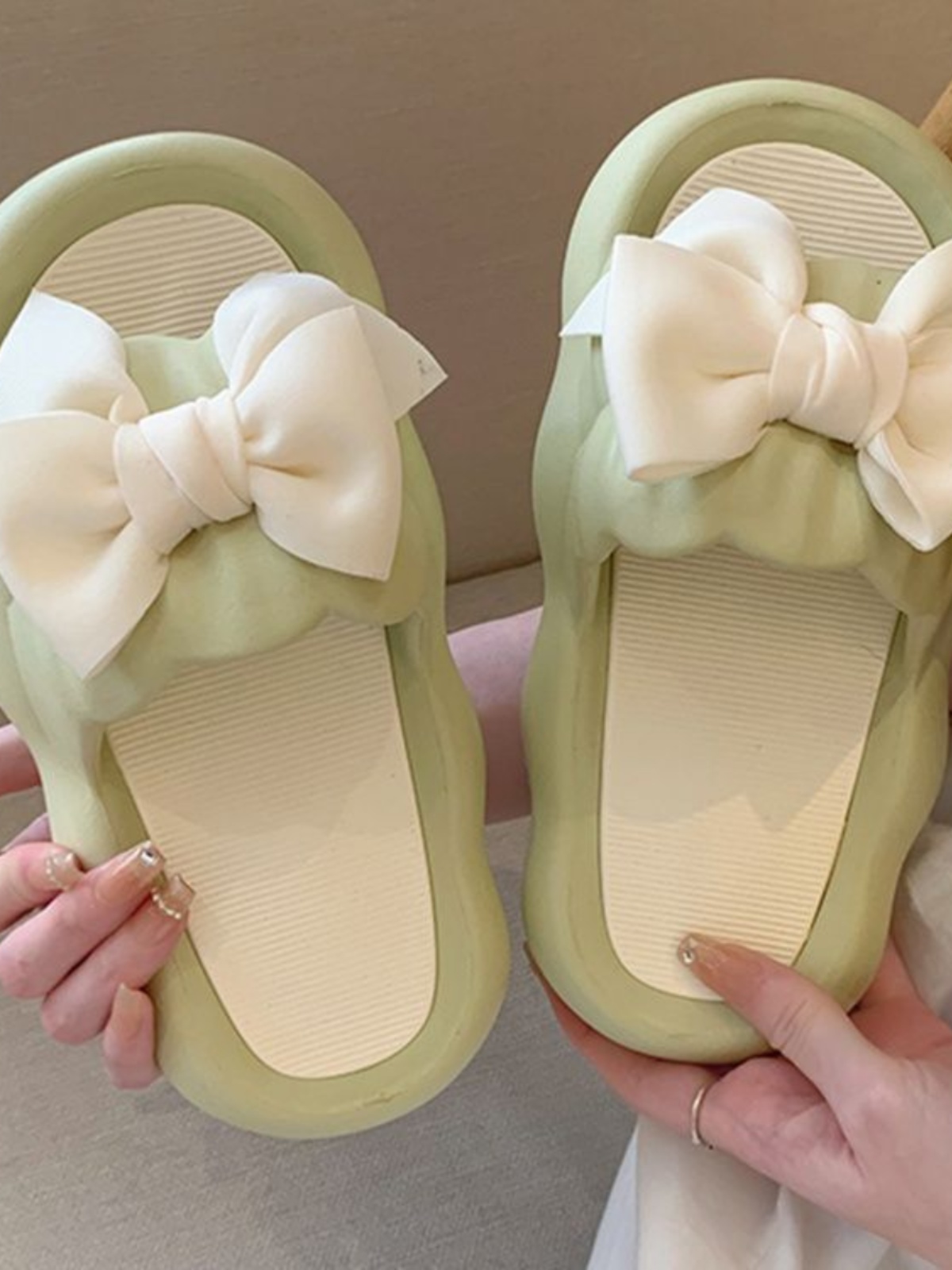 Летние милые слайдеры с бантиком на платформе, нескользящие тапочки