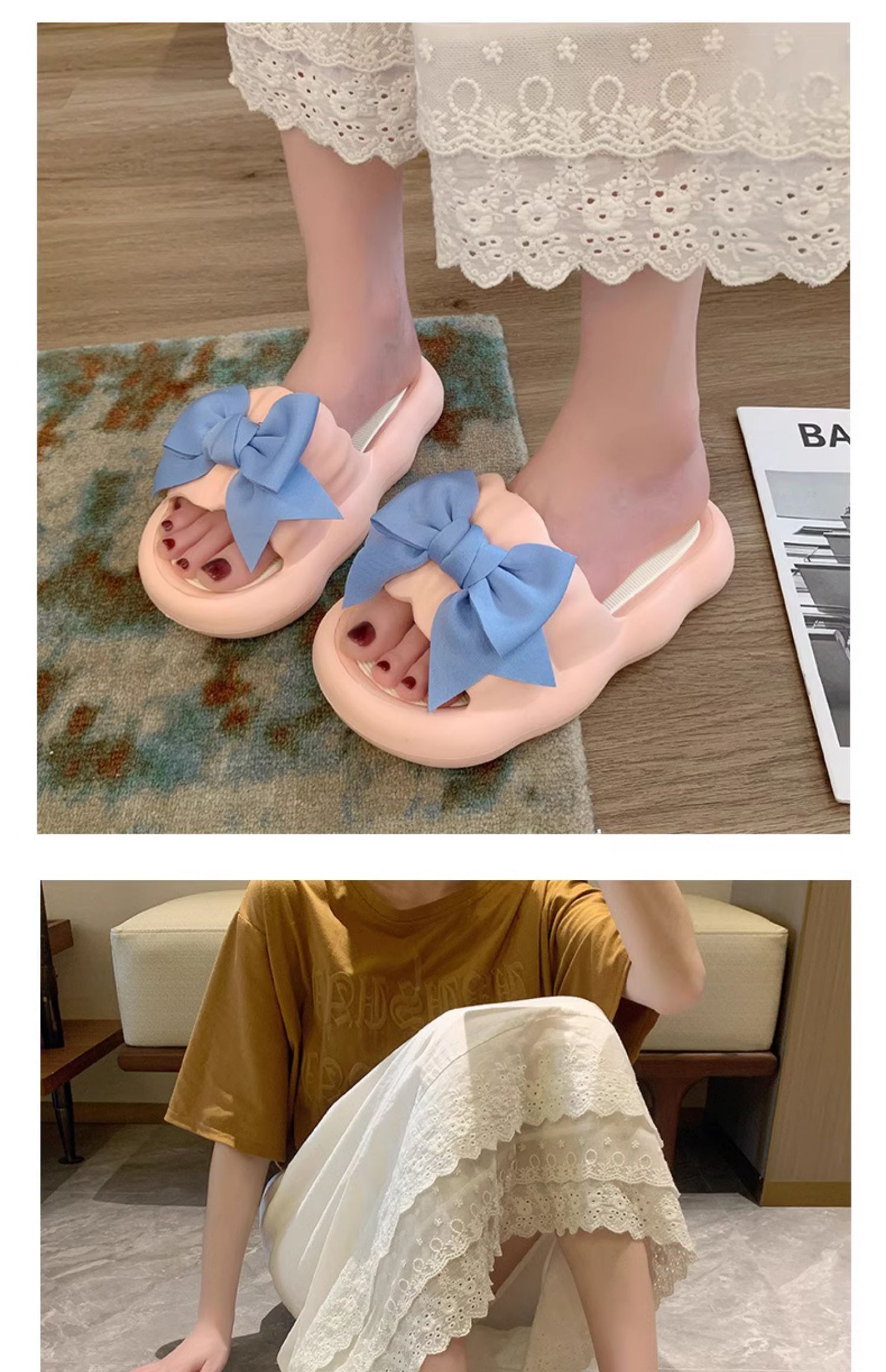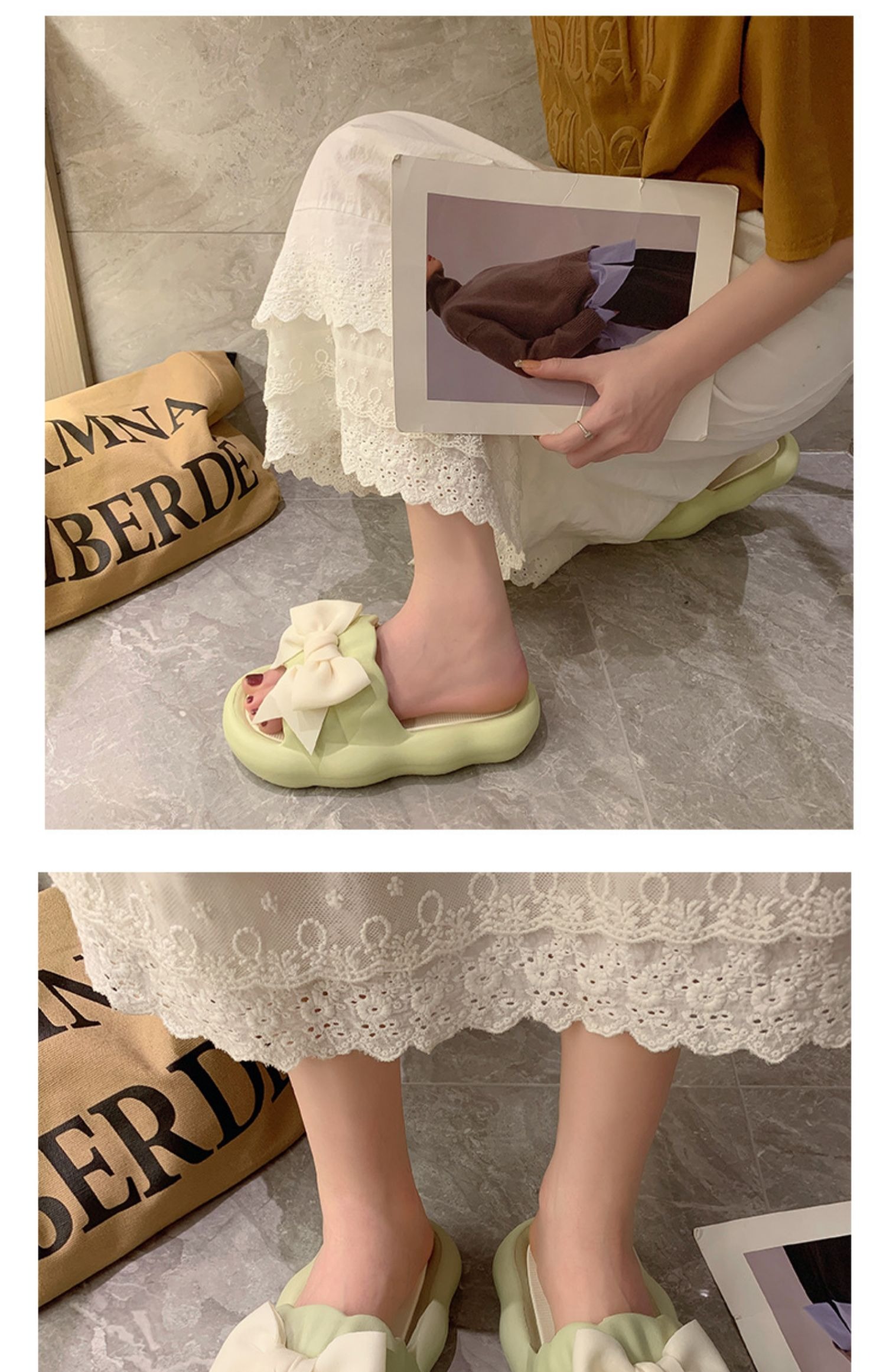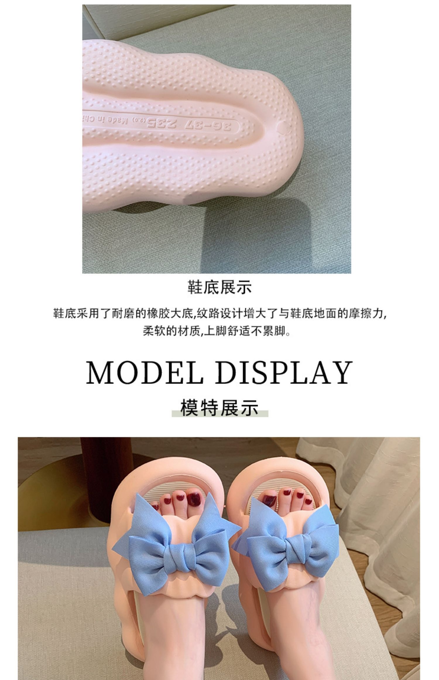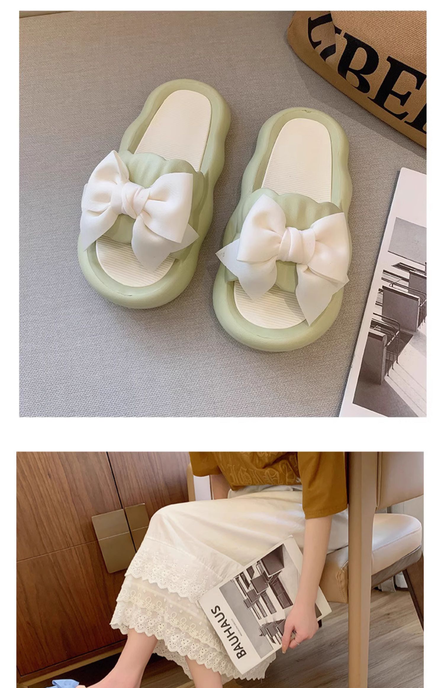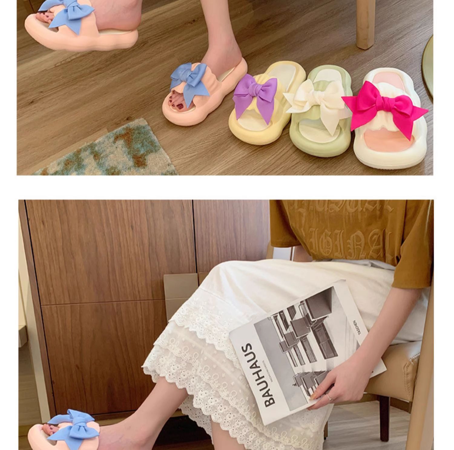 Летние милые слайдеры с бантиком на платформе, нескользящие тапочки