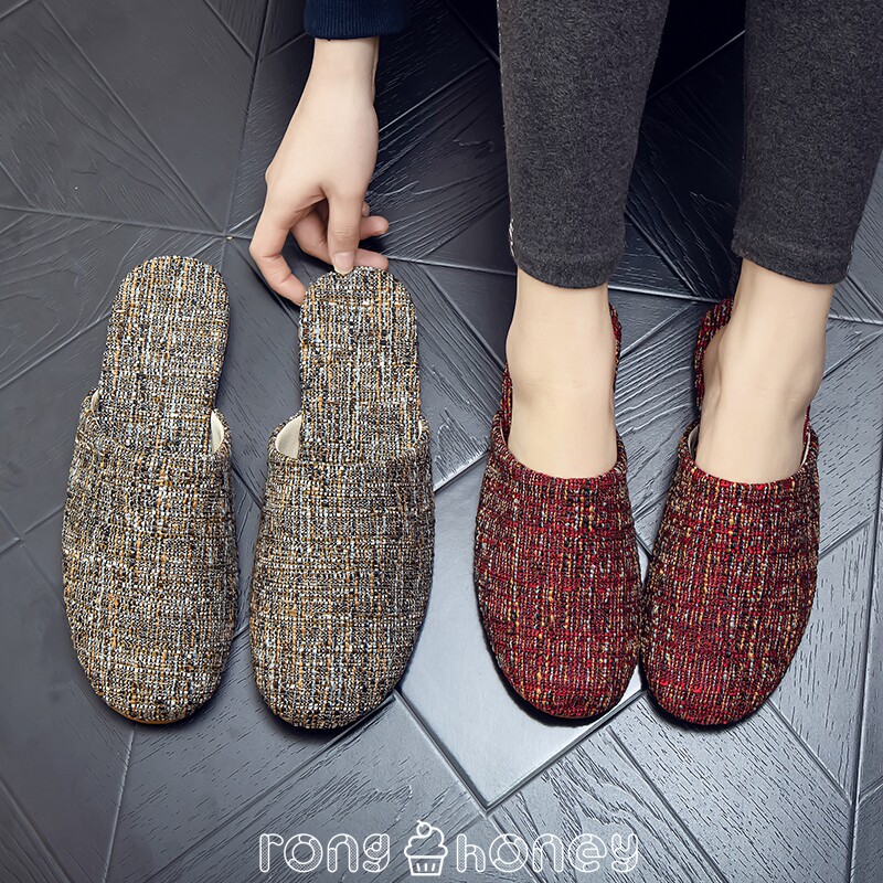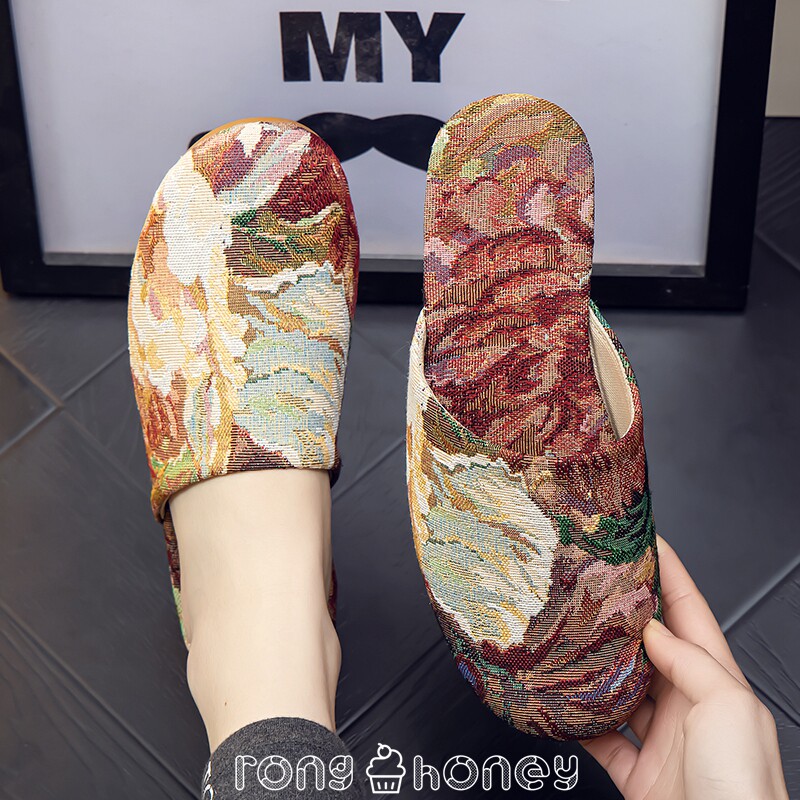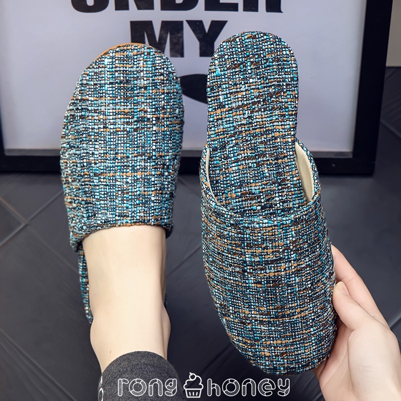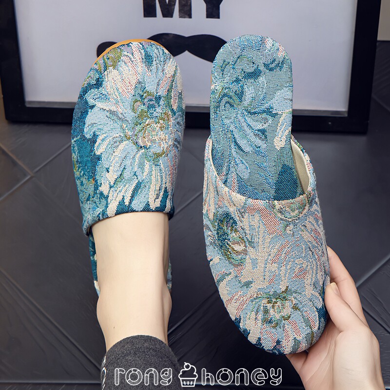 Летняя ретро ткань, слайдеры, тапочки, нескользящая мужская обувь для влюбленных, Германия, из хлопка и льна