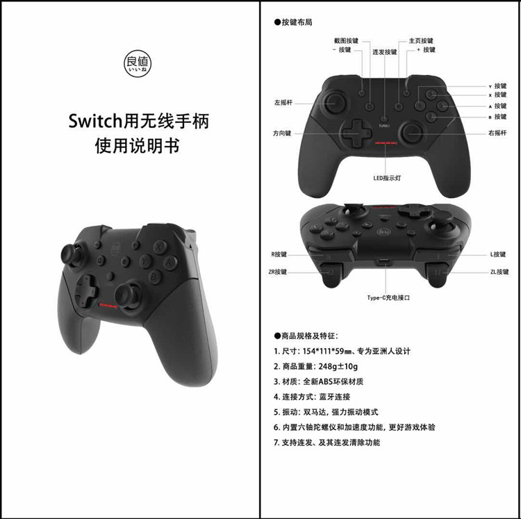 Подходит для аксессуаров Nintendo Switch, хорошей беспроводной ручки Pro, специальная классическая функция Wake -up 2 -го поколения