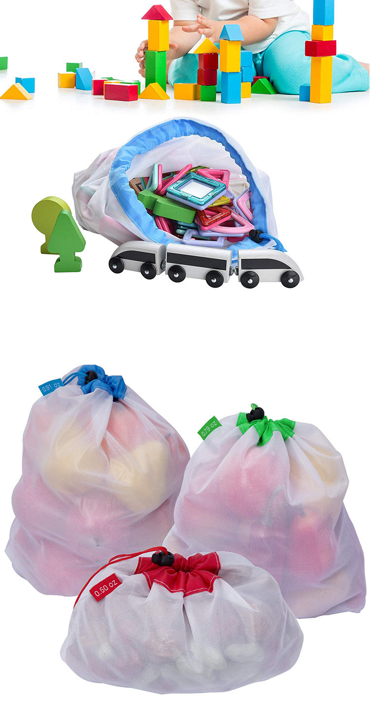 Экологичная сетчатая сумка, складная игрушка для фруктов и овощей, портативная система хранения, на шнурках